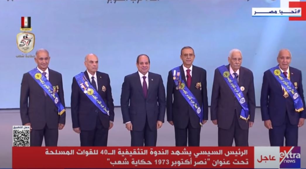 قدم الرئيس عبدالفتاح السيسي، التحية لأبطال حرب أكتوبر، وذلك في الندوة التثقيفية الـ40 للقوات المسلحة، تحت عنوان "نصر أكتوبر 1973 حكاية شعب".