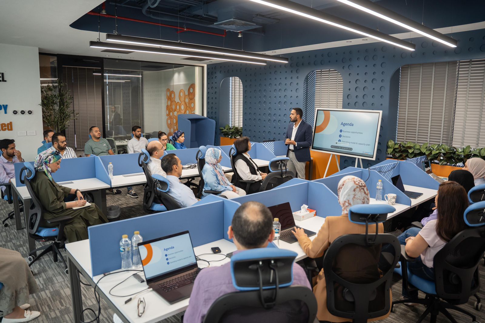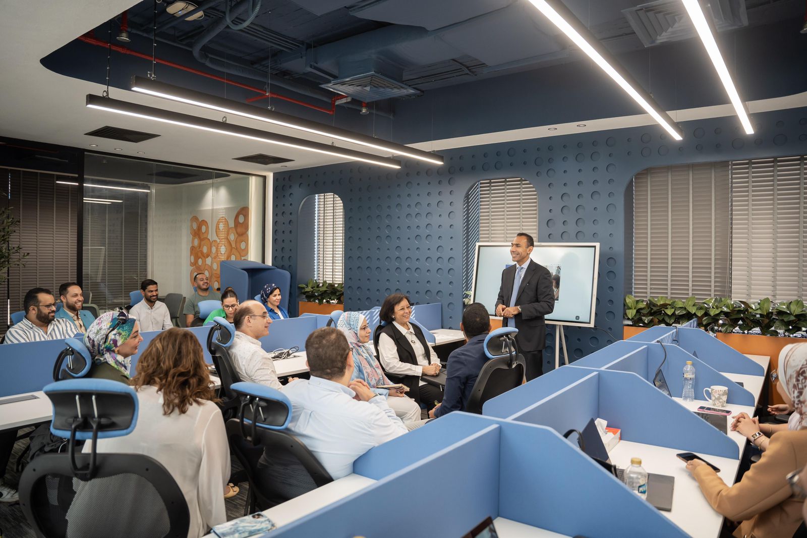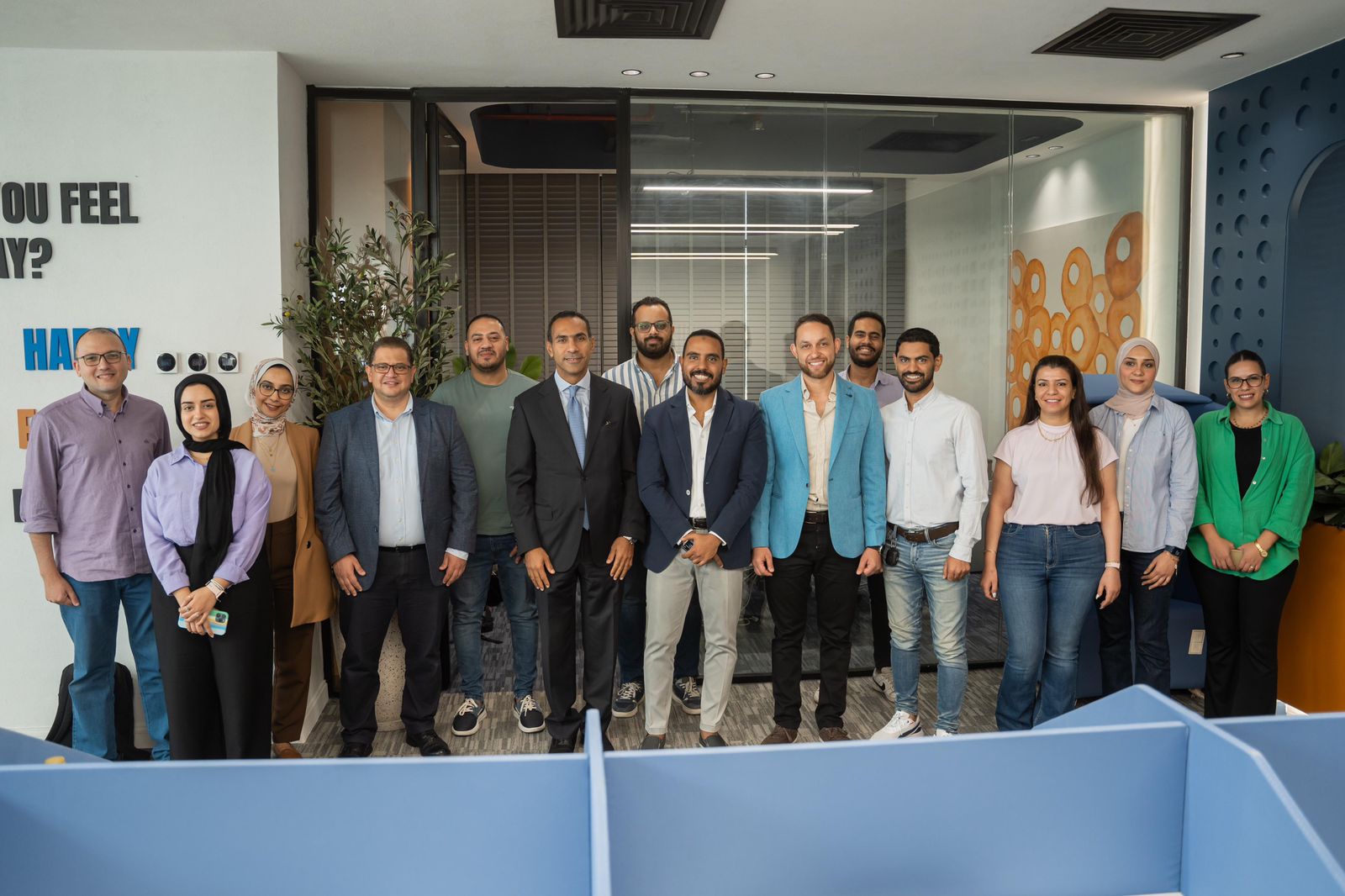 ولفيف من قيادات البنك، وفريق التحول الرقمي بقيادة المهندس بهاء فاروق، رئيس قطاع التحول الرقمي بالبنك.