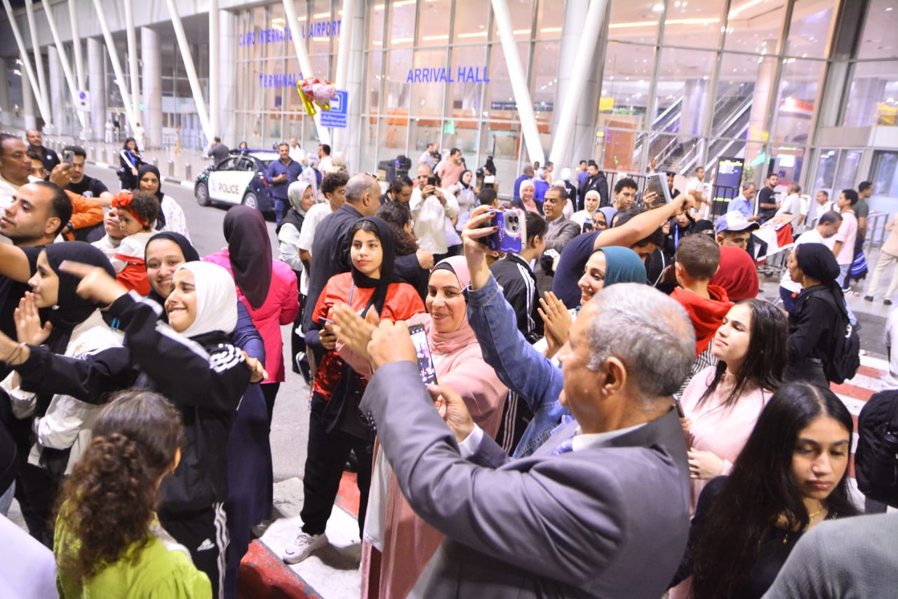 بالفيديو والصور.. استقبال رسمي وشعبي لبعثة الكاراتيه التقليدي بمطار القاهرة