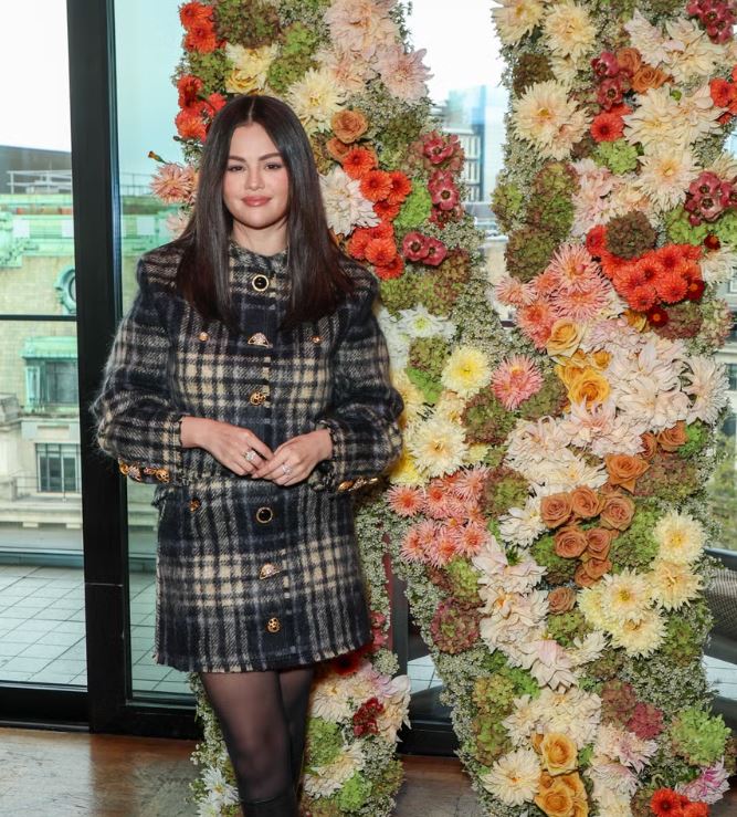 تألقت النجمة والمطربة اللاتينية سيلينا جوميز مرتدية فستانًا من تصميم سكياباريلي في جلسة تصوير التي أقيمت في لندن تزامنًا مع عرض فيلمها الجديد إميليا بيريز.