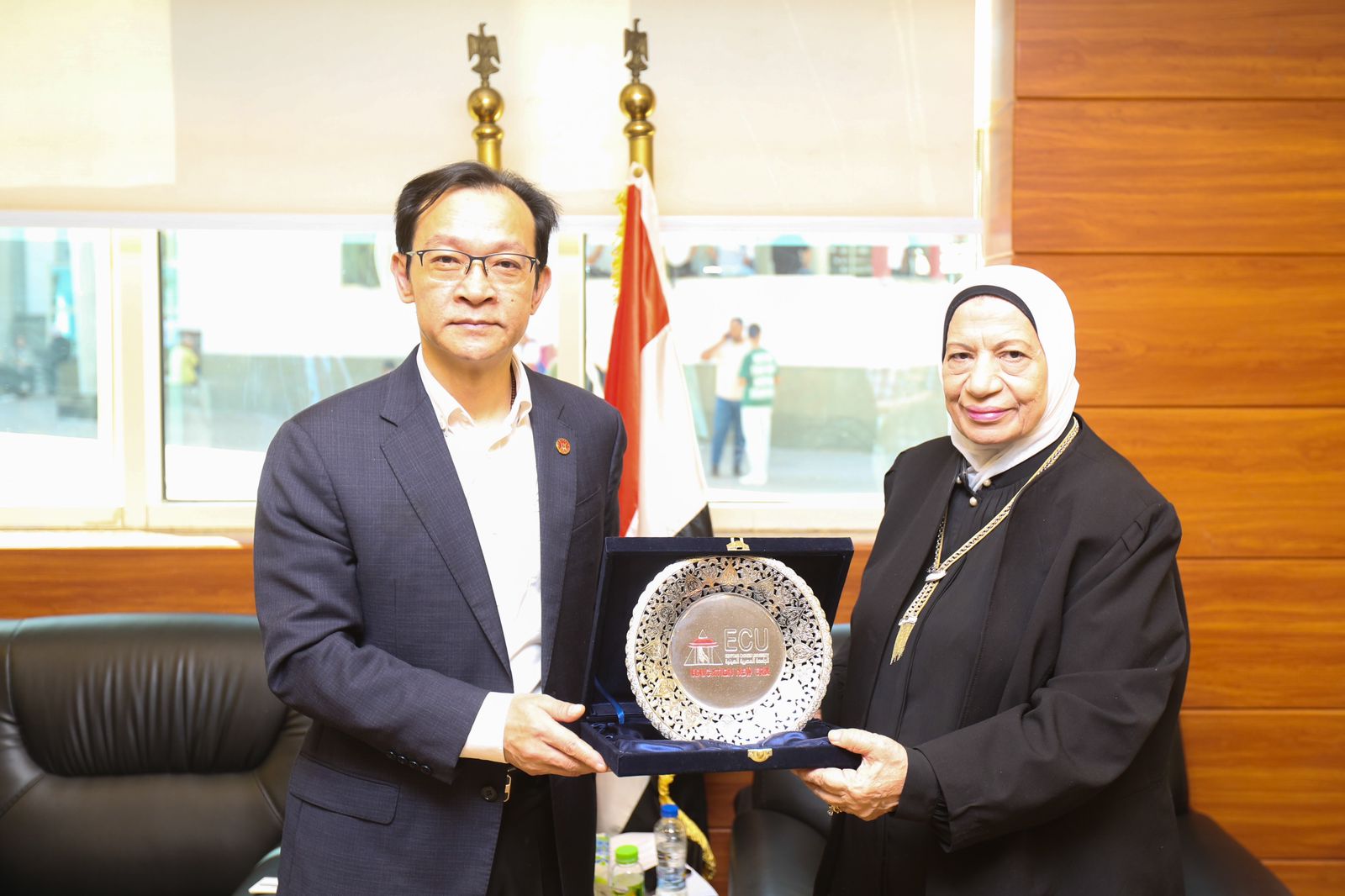 ونوهت إلى أن زيارة وفد جامعة شنغهاي الصينية يعد تتويجا للعلاقات الوطيدة بين مصر والصين وكذلك بين جامعة شنغهاي والجامعة المصرية الصينية.