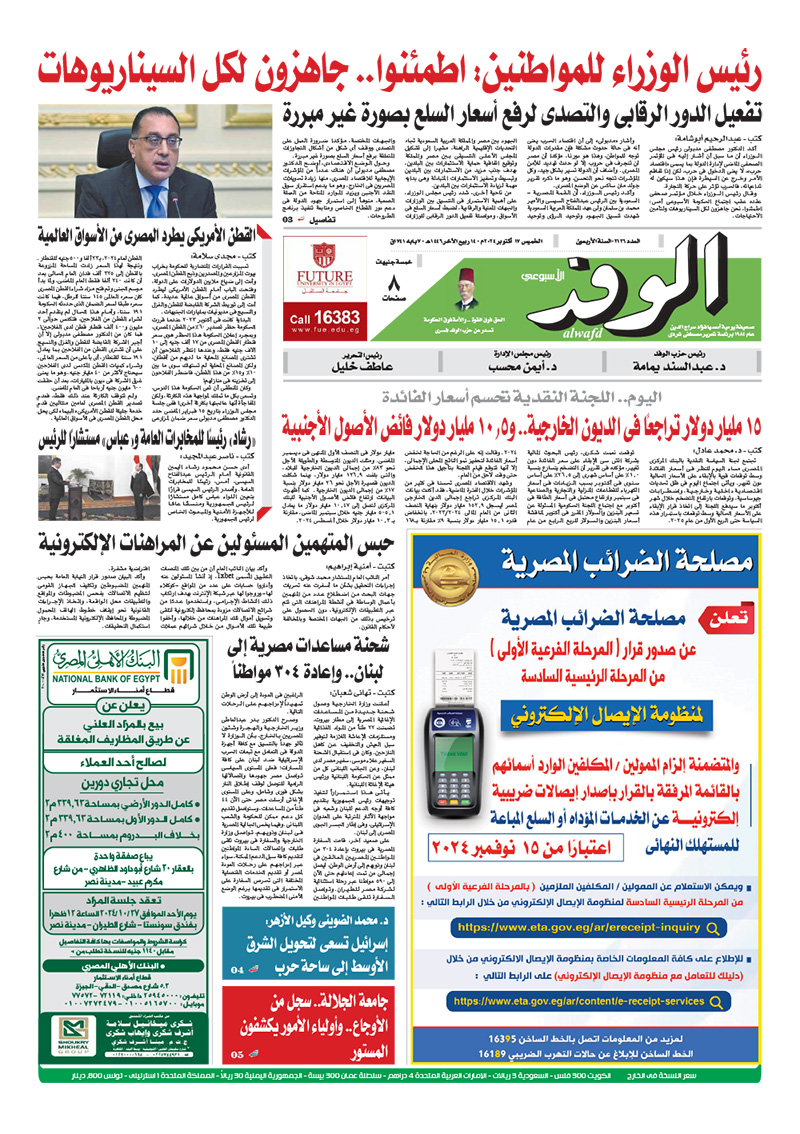 تنشر جريدة الوفد في عددها الصادر، غدًا الثلاثاء، الكثير من الموضوعات والتقارير الإخبارية المهمة، أبرزها: “رئيس الوزراء للمواطنين: اطمئنوا.. جاهزون لكل السيناريوهات".