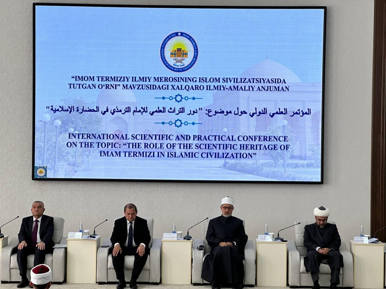 وأضاف خلال كلمته بمؤتمر "دور التراث العلمي للإمام الترمذي في الحضارة الإسلامية" المنعقد بمدينة (ترمذ) بأوزبكستان، أن هذا المؤتمر قد جاء في وقت أمتنا الإسلامية في أمس الحاجة إليه، حيث نرى الحرب على هذا التراث العلمي والمعرفي والذي غيّر خريطة العالم ونقله نقلة نوعية، فقد استطاع به ومن خلاله أن يخرج من حال الضيق إلى السعة وحال الظلمة إلى النور ومن حال الجهل إلى العلم والمعرفة، وهذه الحالة التي صنعها التراث ليست بغريبة إذ قد استمد تعاليمه من دعوة عالمية ورسالة رشيدة أخذت بيد العباد إلى طريق الصلاح والفلاح.