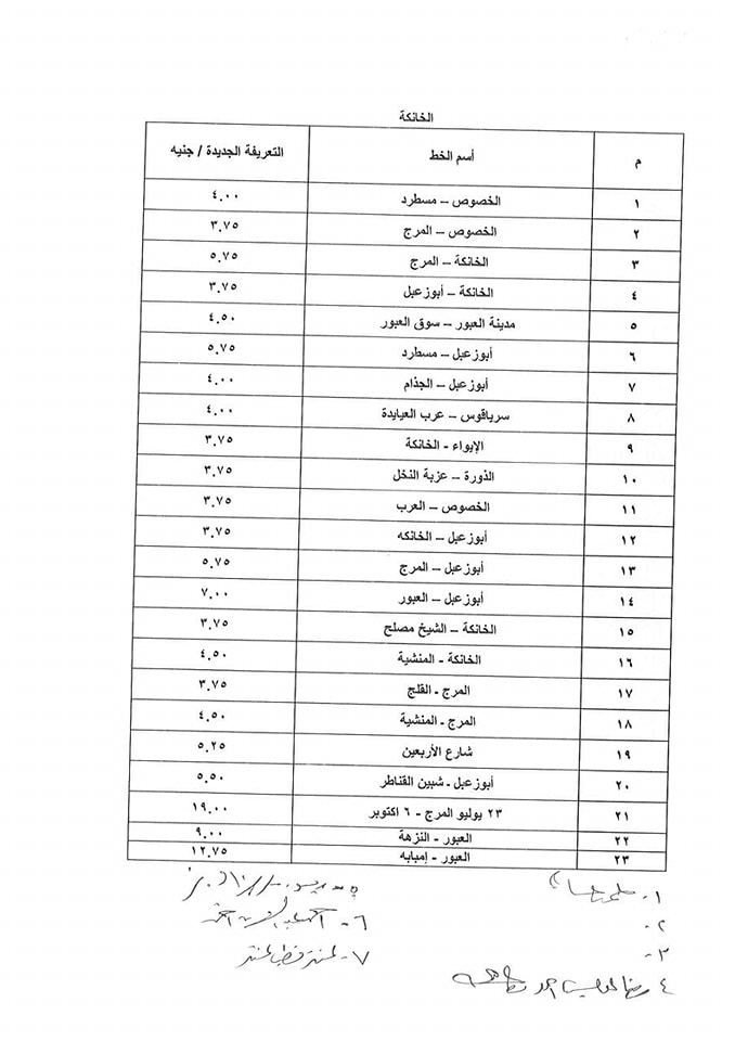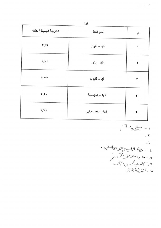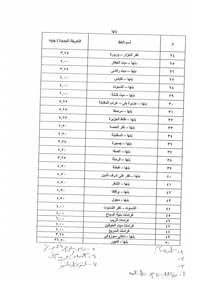 أسعار تعريفة الركوب الجديدة لسيارات الأجرة بالقليوبية