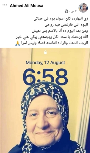 وتابع: الله يرحمك يا ست الكل ويجمعني بيكي على خير الرجاء الدعاء وقراءة الفاتحة، فضلًا وليس أمرًا".