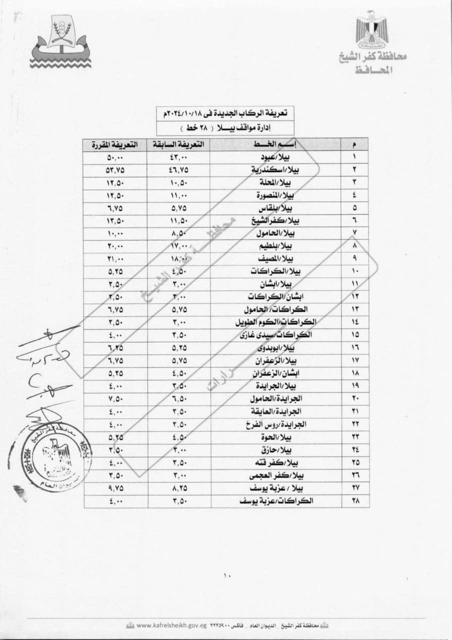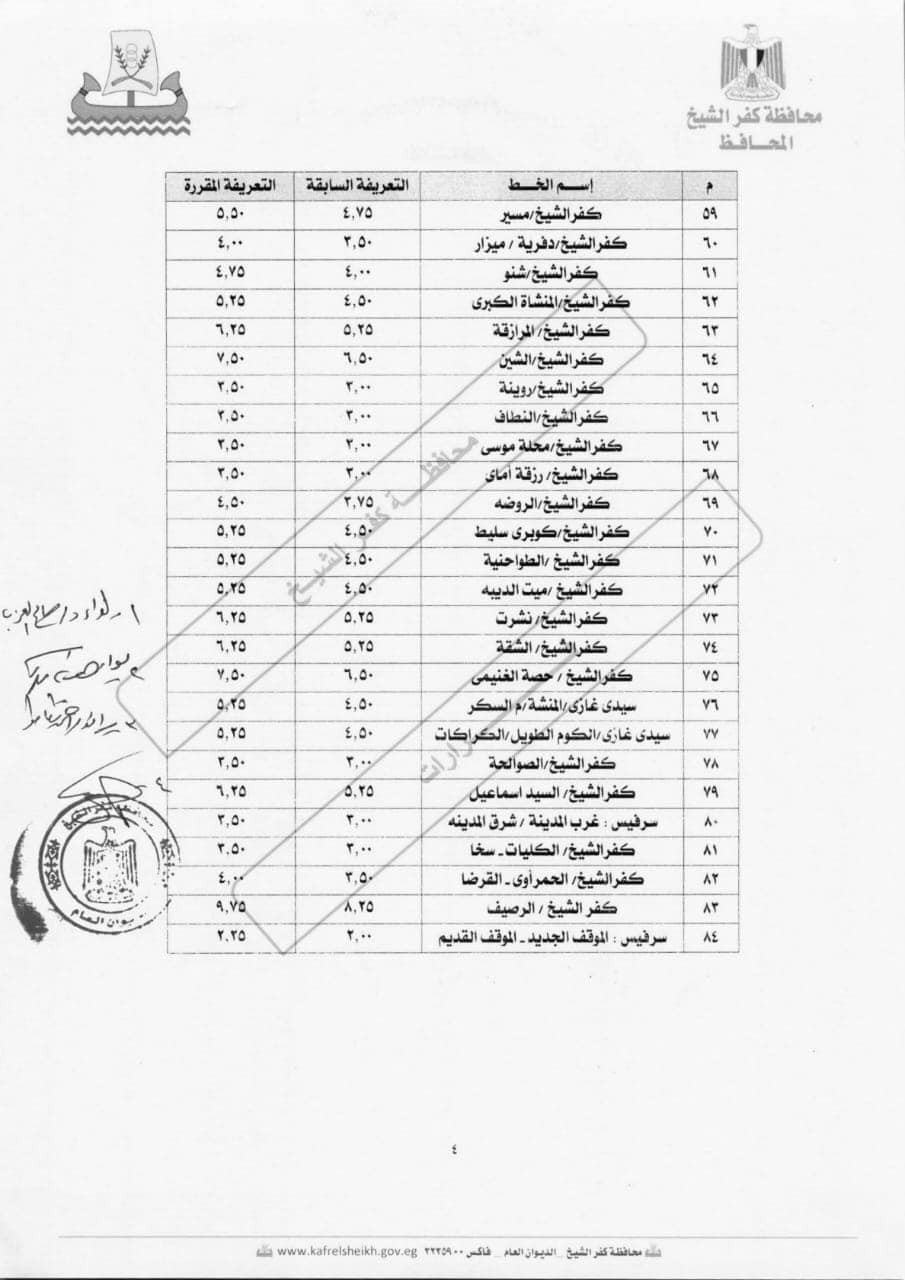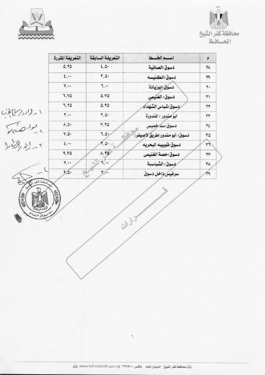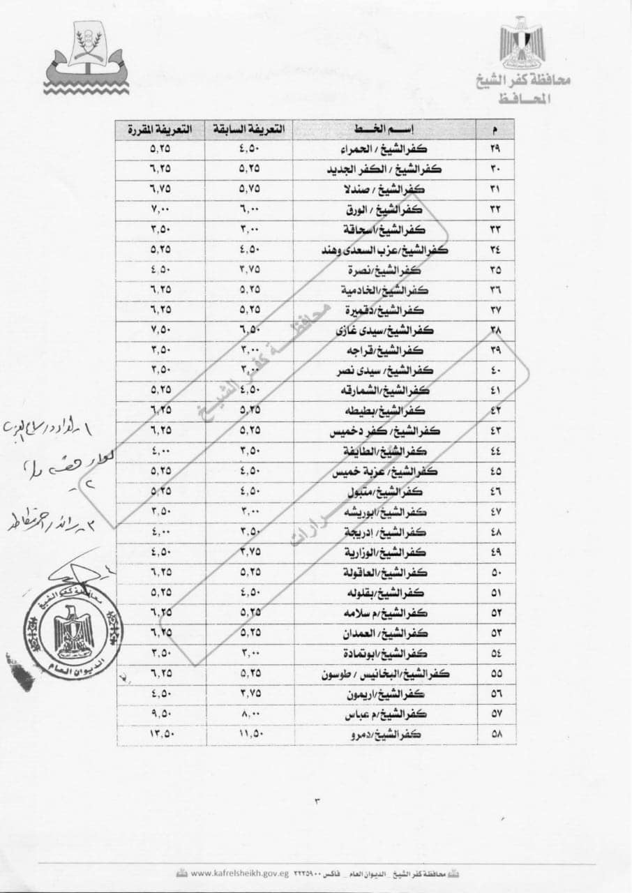 كفرالشيخ تحدد التعريفة