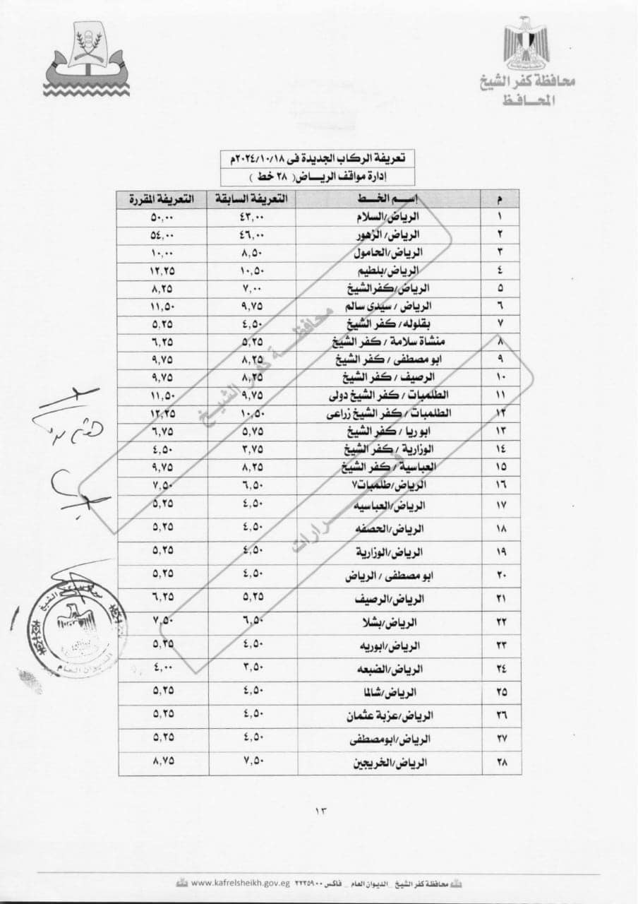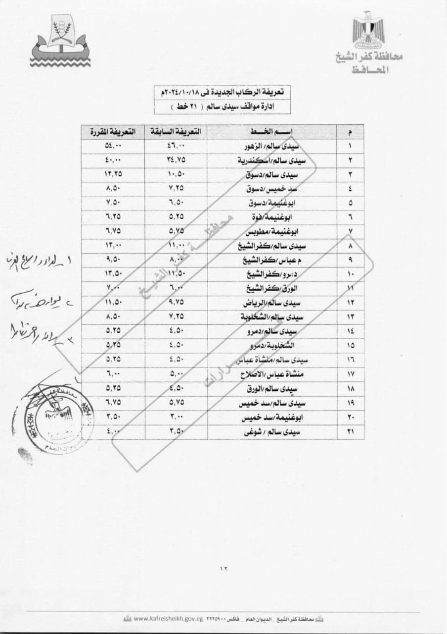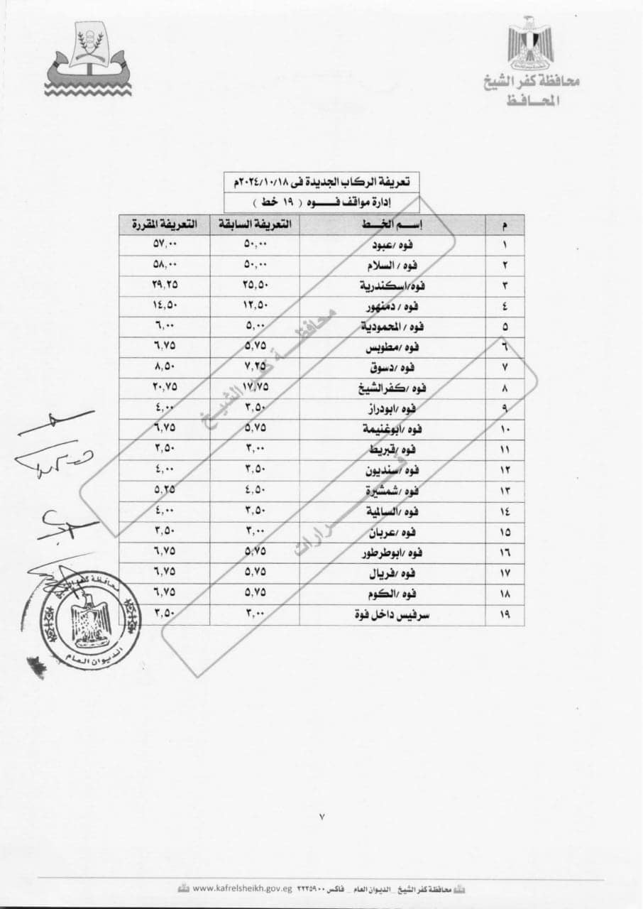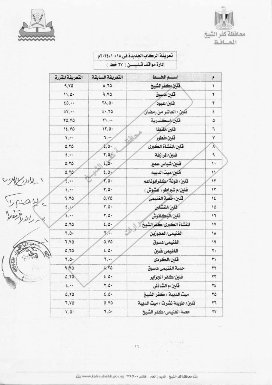 كفرالشيخ تحدد التعريفة