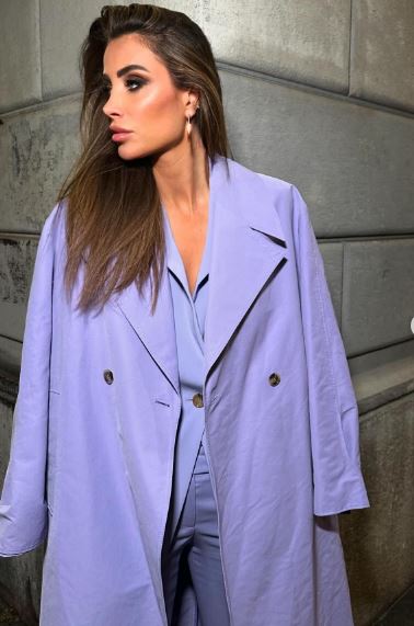 وبدت أنابيلا هلال بإطلالة عصرية، مواكبة لموضة خريف 2024، حيث ارتدت جاكيتًا طويلًا ونسقت عليه سترة تزينت بالازرار الخشبية مع بنطال باللون اللافندر.