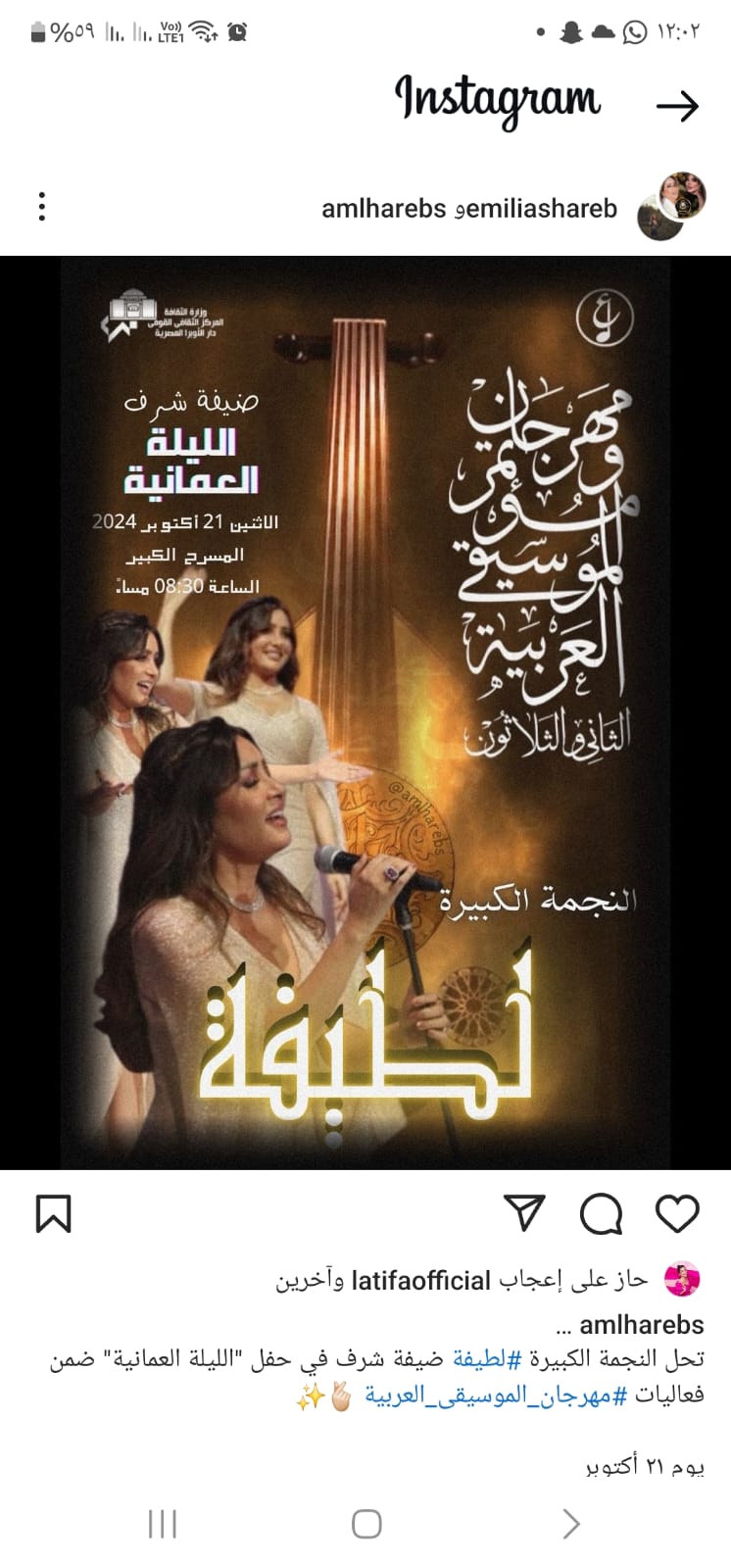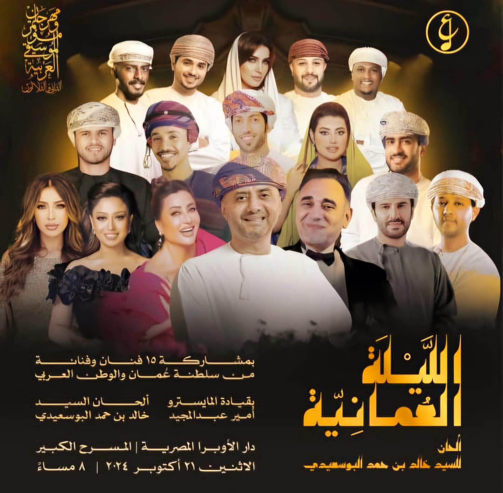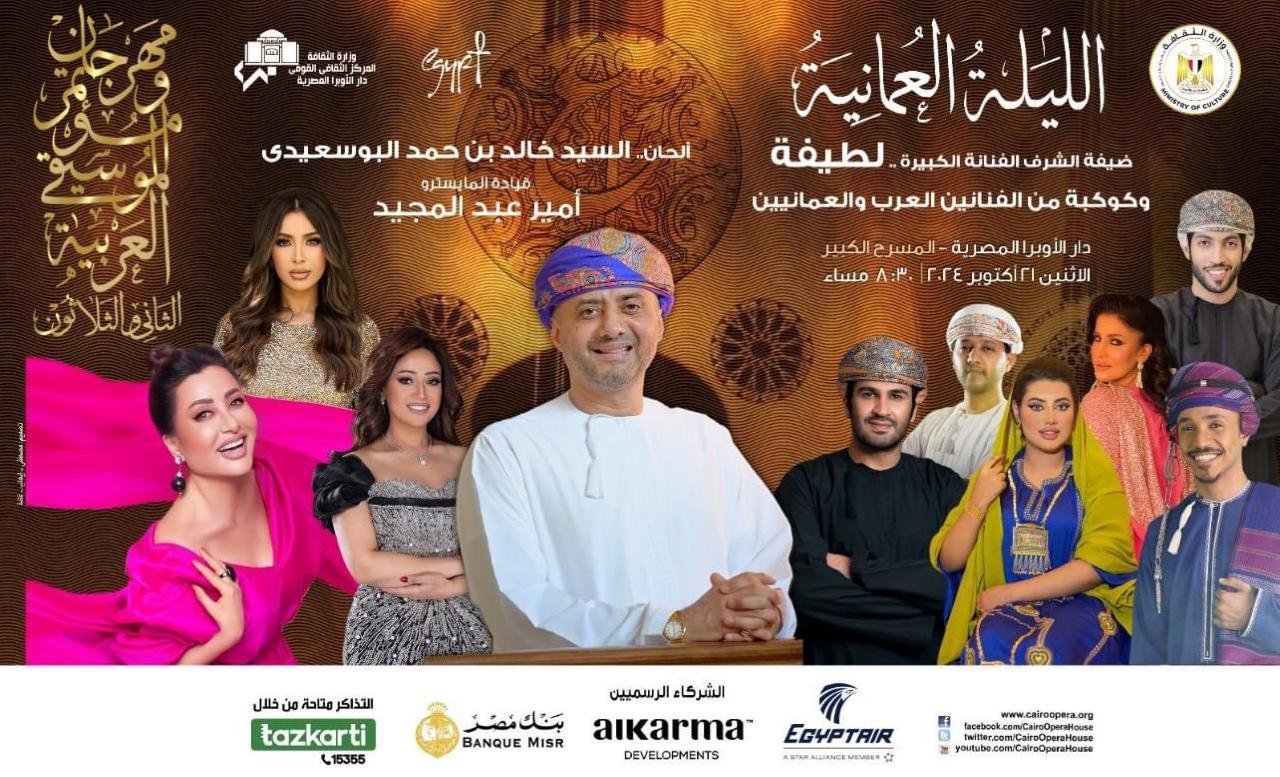 فعلى المسرح الكبير وتحت عنوان ليلة عمانية يجتمع نخبة من النجوم العرب مع مطربى سلطنة عمان ليتغنوا بألحان الموسيقار خالد بن حمد البوسعيدى، بمصاحبة الأوركسترا قيادة المايسترو أمير عبد المجيد وتحل عليهم الفنانة القديرة لطيفة كضيف شرف مع كل من الفنانة جنات والفنانة ريهام عبد الحكيم.