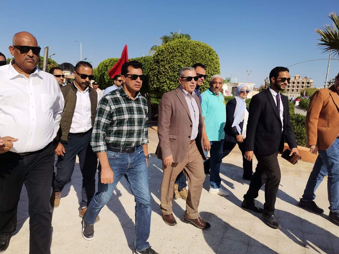 رافق الوزير في الجولة الدكتور خالد مسعود رئيس قطاع الشباب اللواء عبدالرحمن شلش رئيس الإدارة المركزية للمدن الشبابية والدكتور سيد حزين رئيس الإدارة المركزية لمراكز الشباب والهيئات الشبابية فراج عبد المقصود وكيل وزارة الشباب والرياضة بالبحر الأحمر والدكتور عبدالله البحار معاون الوزير للتسويق والاستثمار إيهاب الإبيارى مدير عام الانشاءات الرياضية، محمد عساف مدير عام الانشاءات الشبابية وممدوح خليفة وكيل المديرية للرياضة .