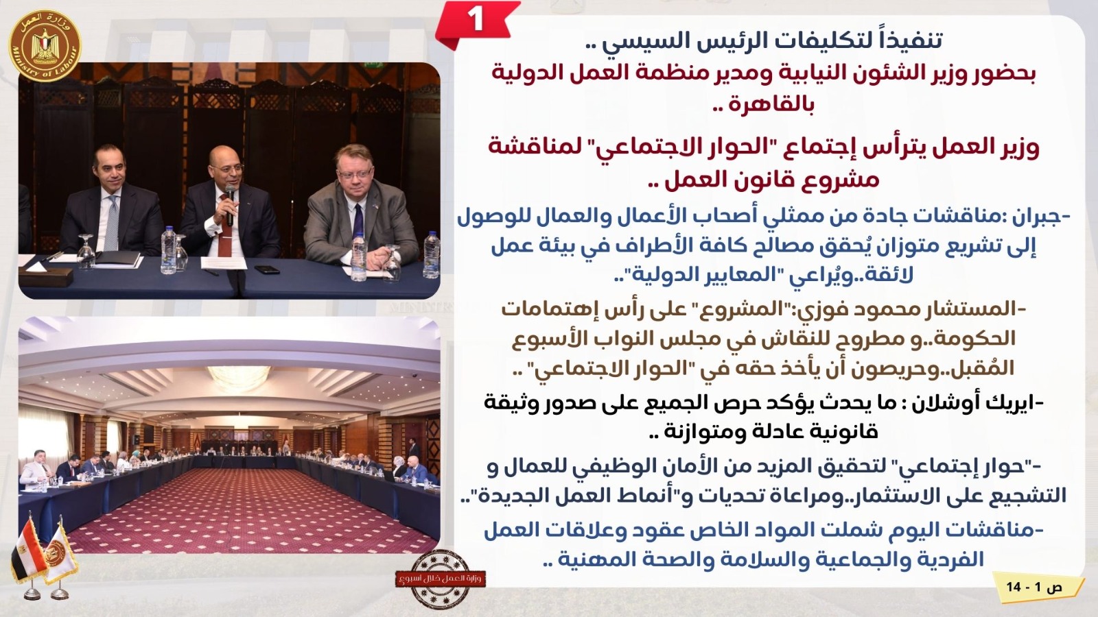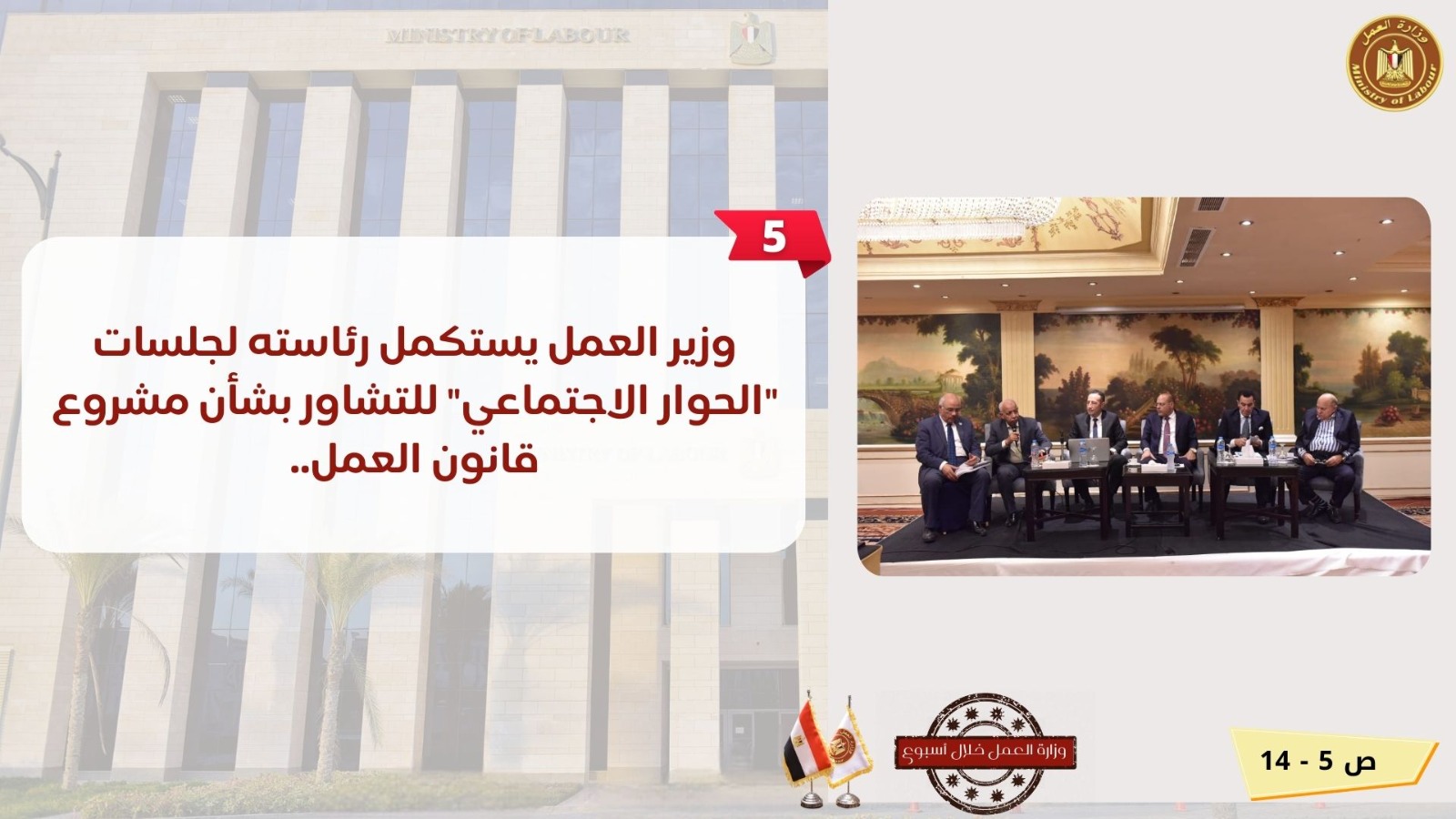 وزارة العمل في 7 أيام.. مناقشة القانون الجديد وإعلان وظائف للشباب