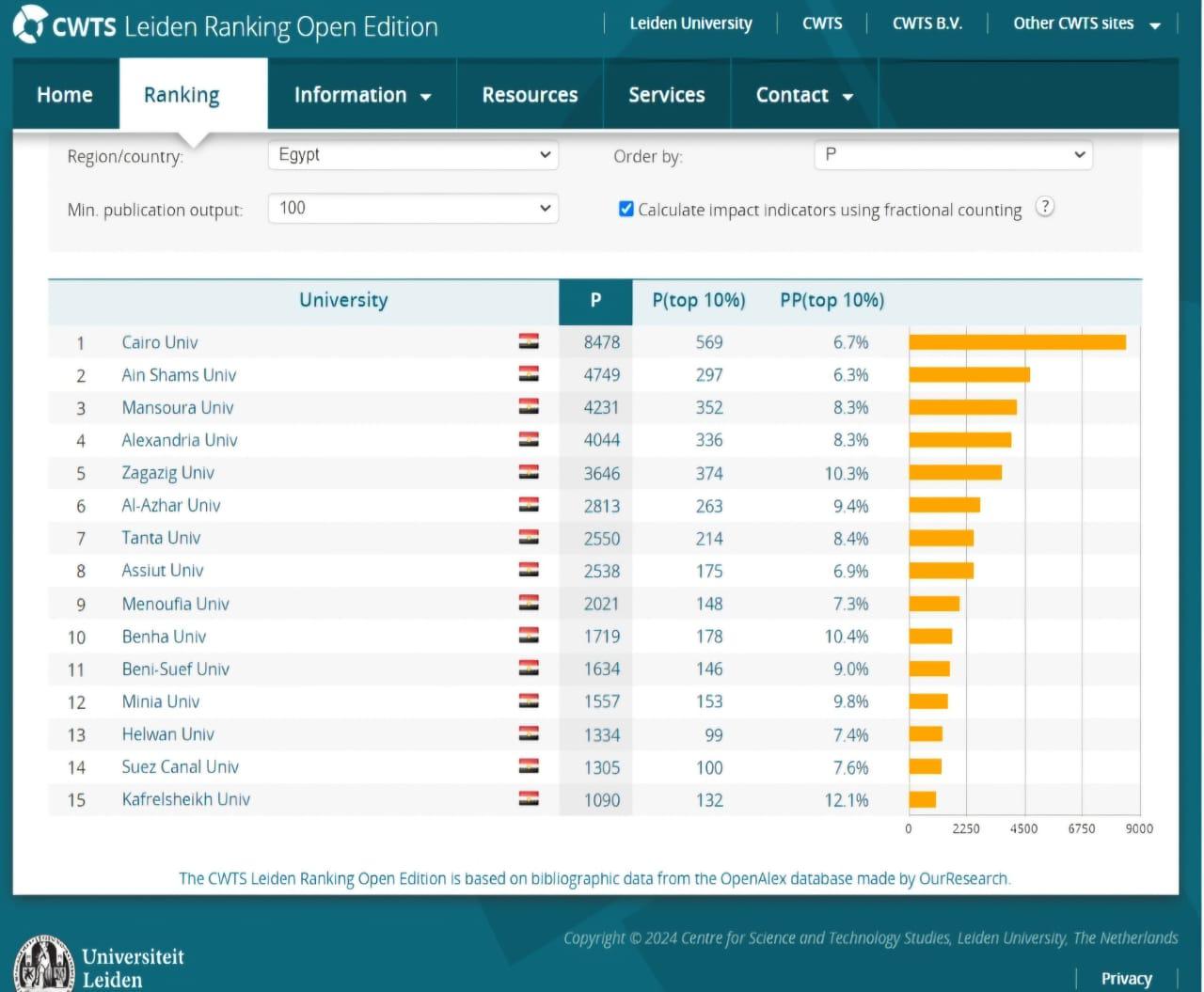 وأضاف رئيس جامعة القاهرة، أن التصنيف الهولندي يعد تصنيفًا فريدًا يتيح مؤشرات متطورة وإنشاء نتائج بناءً على هذه المؤشرات واستكشافها من مناظير مختلفة متعددة الأبعاد منها التأثير العلمي والنشر المفتوح، كما يوفر معلومات حصرية وشفافة حول الأبحاث التي أجرتها الجامعة، مما يضمن استقلال التصنيف وعدم تحيزه لاعتماده على أحدث البيانات المبوبة في قاعدة Open Alex العالمية.