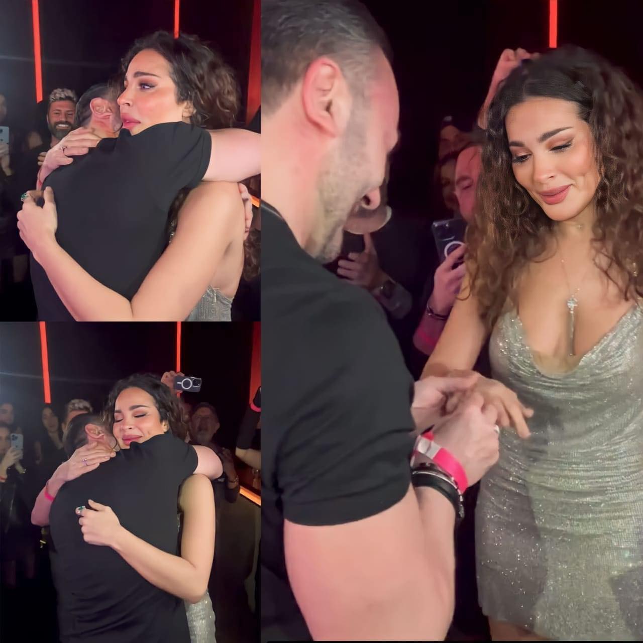 ظهر ناربيكيان في مقطع الفيديو أثناء إخراجه الخاتم من جيبه ليقوم بعرض الزواج عليها، ففوجئت الفنانة وردت فورا بالموافقة ليبدأ الحاضرون بالتفاعل مع الفرحة.
