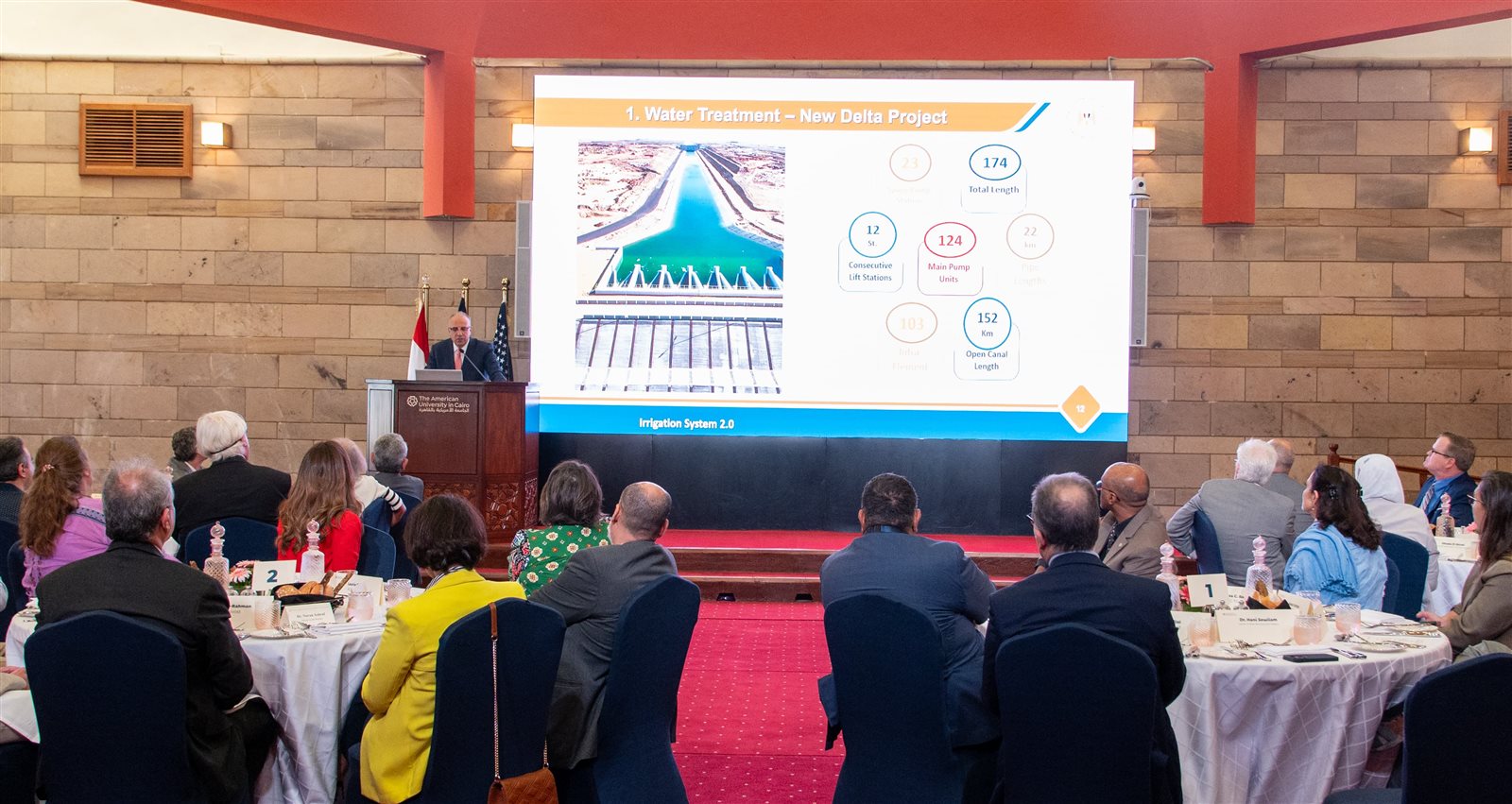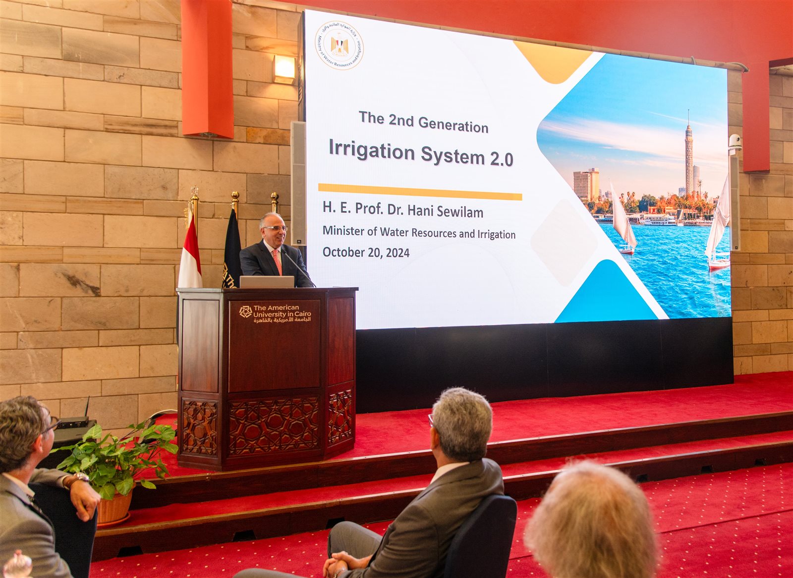 استعرض الدكتور هانى سويلم وزير الموارد المائية والرى خلال الاجتماع السنوي لمجلس أمناء الجامعة الأمريكية، أهم ملامح ومحاور الجيل الثاني لمنظومة الري فى مصر 2.0.