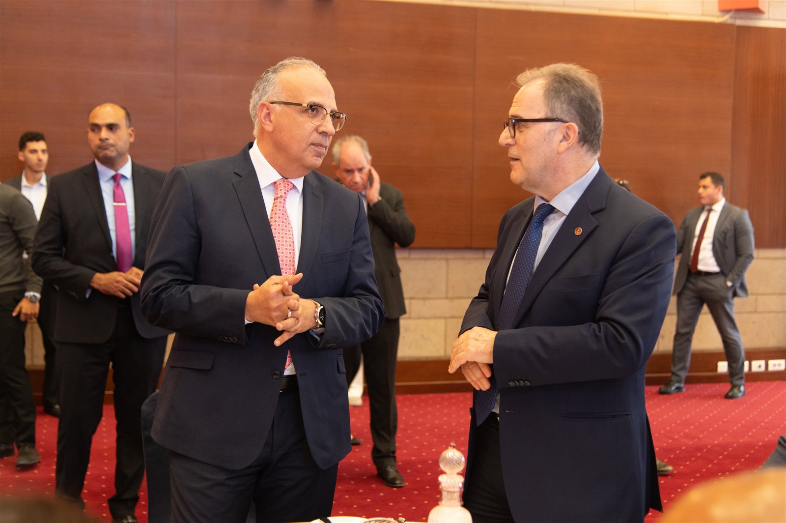 كما استعرض الموقف المائى الحالي، ولفت إلى أن احتياجات مصر المائية تبلغ حوالى ١١٤ مليار متر مكعب من المياه سنويًا، في حين تقدر موارد مصر المائية بحوالي ٥٩.٦٠ مليار متر مكعب سنويًا (٥٥.٥٠ مليار من مياه نهر النيل – ١.٣٠ مليار من مياه الأمطار – ٢.٤٠ مليار من المياه الجوفية العميقة غير المتجددة – ٠.٤٠ مليار من تحلية مياه البحر)، مع إعادة استخدام ٢١.٦٠ مليار متر مكعب سنويًا من المياه، واستيراد محاصيل زراعية من الخارج تقابل استهلاك مائى يُقدر بحوالي ٣٣ مليار متر مكعب سنويًا من المياه.