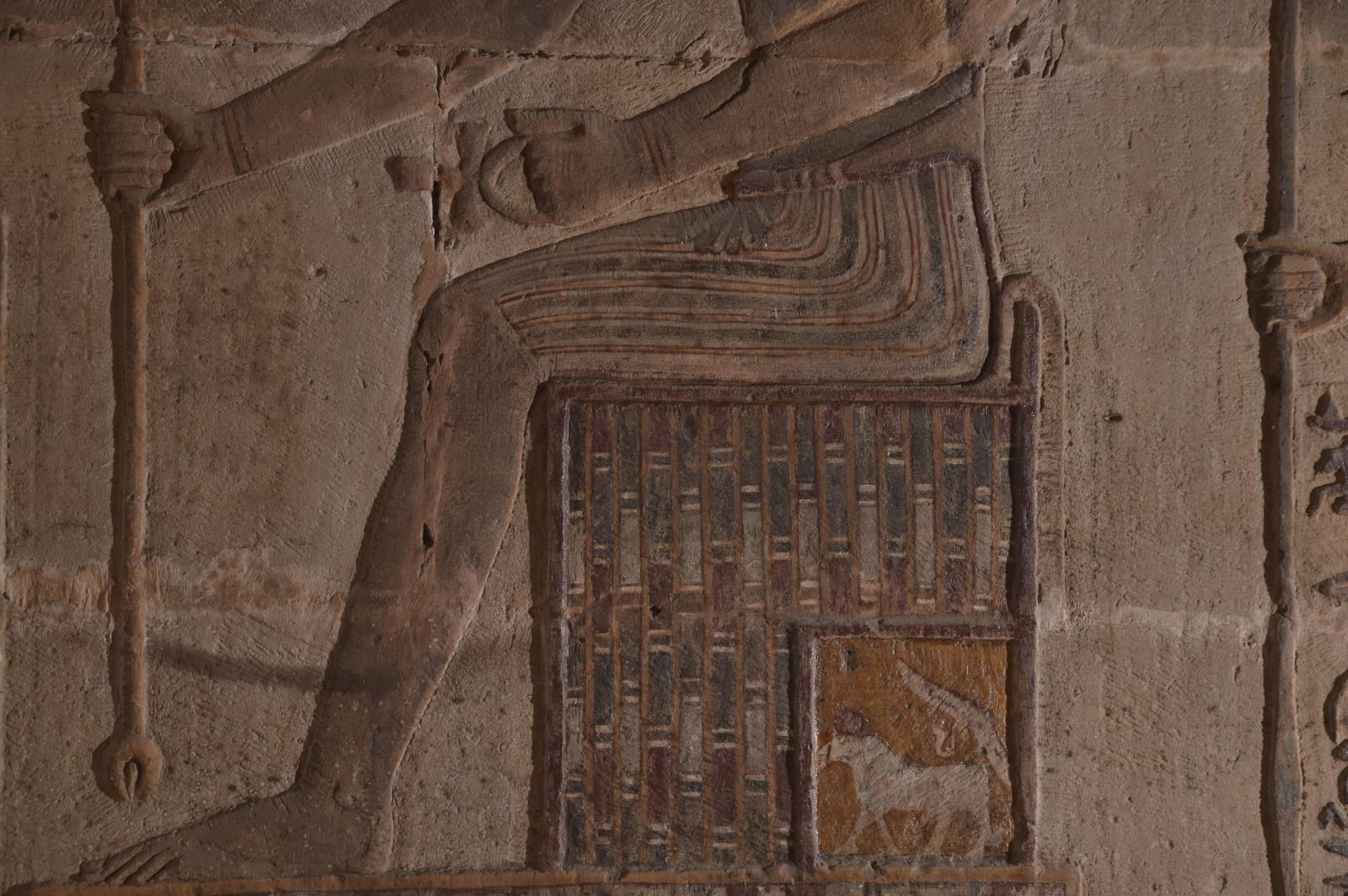 ومن جانبه قال الدكتور هشام الليثي رئيس قطاع حفظ وتسجيل الآثار المصرية بالمجلس الأعلى للآثار ورئيس البعثة من الجانب المصري، أن كل التفاصيل المرسومة على الجدران والتي تم الكشف عنها تشكل جزءاً لا يتجزأ من مشاهد القرابين التي تغطي الجدران الداخلية للمعبد، حيث إنه حتى الآن لم تكن النصوص الهيروغليفية والنقوش معروفة إلا أن زخارف كراسي العرش لها معناها الخاص.