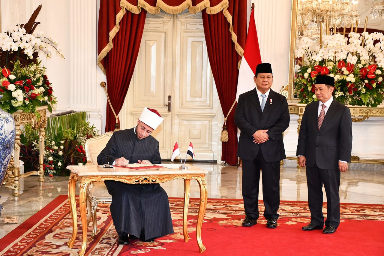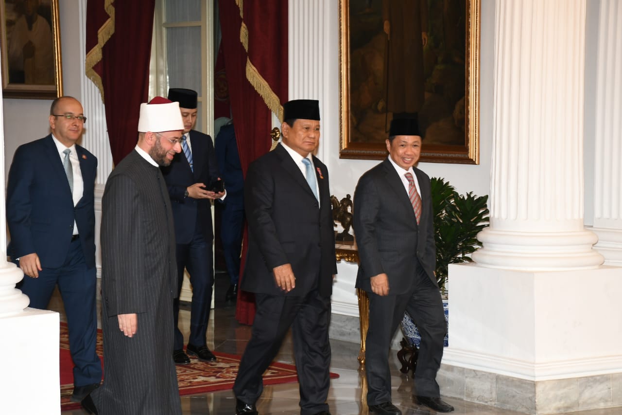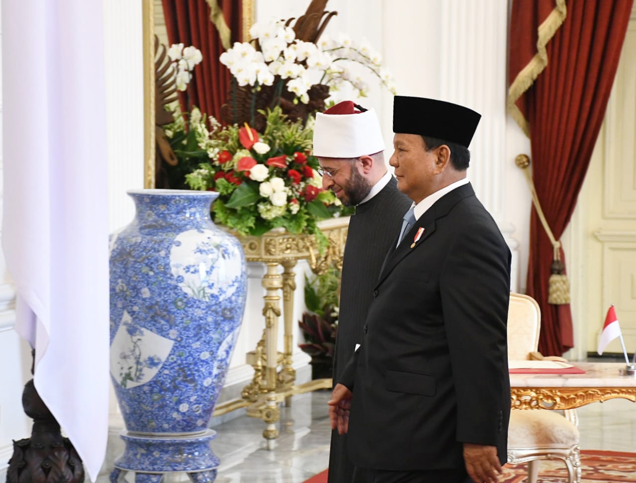 استقبل برابوو سوبيانتو رئيس جمهورية إندونيسيا، الدكتور أسامة الأزهري وزير الأوقاف ممثلا للرئيس عبد الفتاح السيسي في قصر الرئاسة في العاصمة جاكرتا، صباح اليوم.