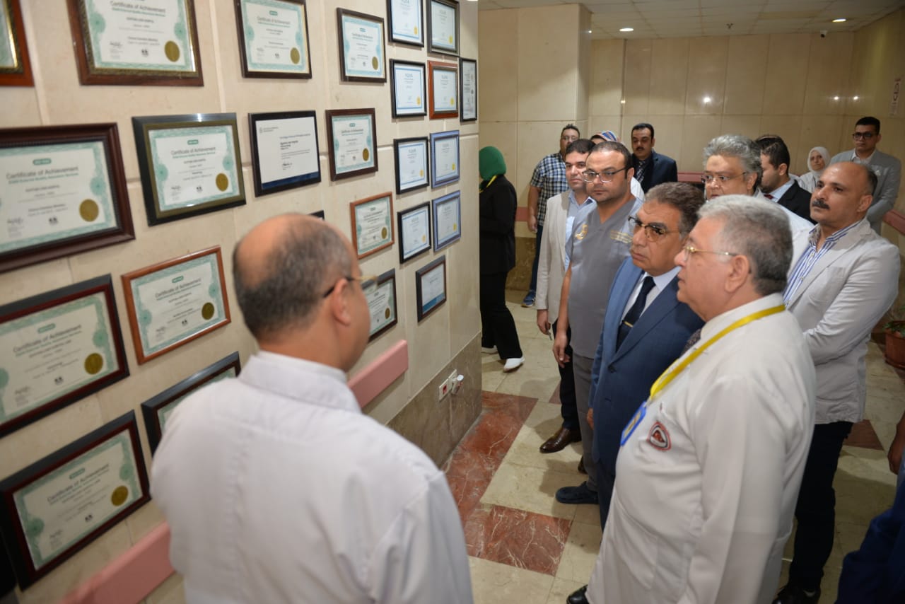 حيث تفقد محافظ الدقهلية العيادة الخارجية وبها 14غرفة كشف والكافتيريا والصيدلية ويتم صرف 150روشتة يوميا ،كما تفقد معامل التحاليل الطبية