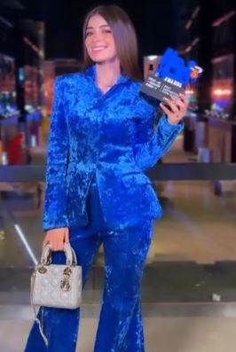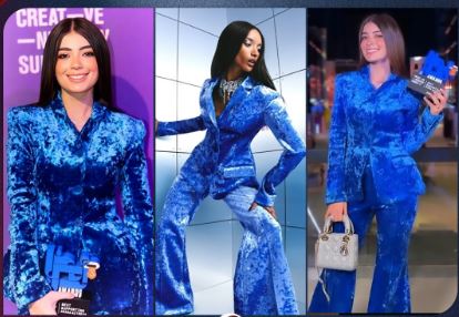 وتألقت ليلى أحمد زاهر بإطلالة ساحرة، مرتدية بدلة مجسمة بأكمام طويلة صممت من قماش المخمل باللون الأزرق حملت توقيع العلامة التجارية h&m، وصل سعرها 15 ألف جنيه.