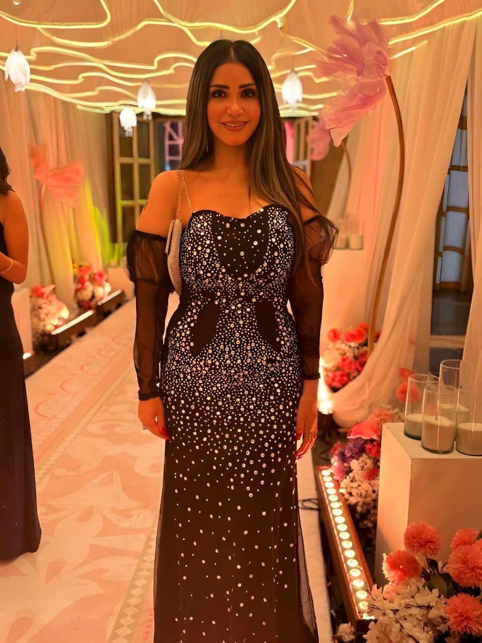 تألقت إيناس عز الدين، بفستان أسود ملكي طويل، أبرز أنوثتها وجمالها، واختارت إكسسوارات مميزة لتكمل إطلالتها الأنيقة، مما جعلها محط أنظار الجميع.