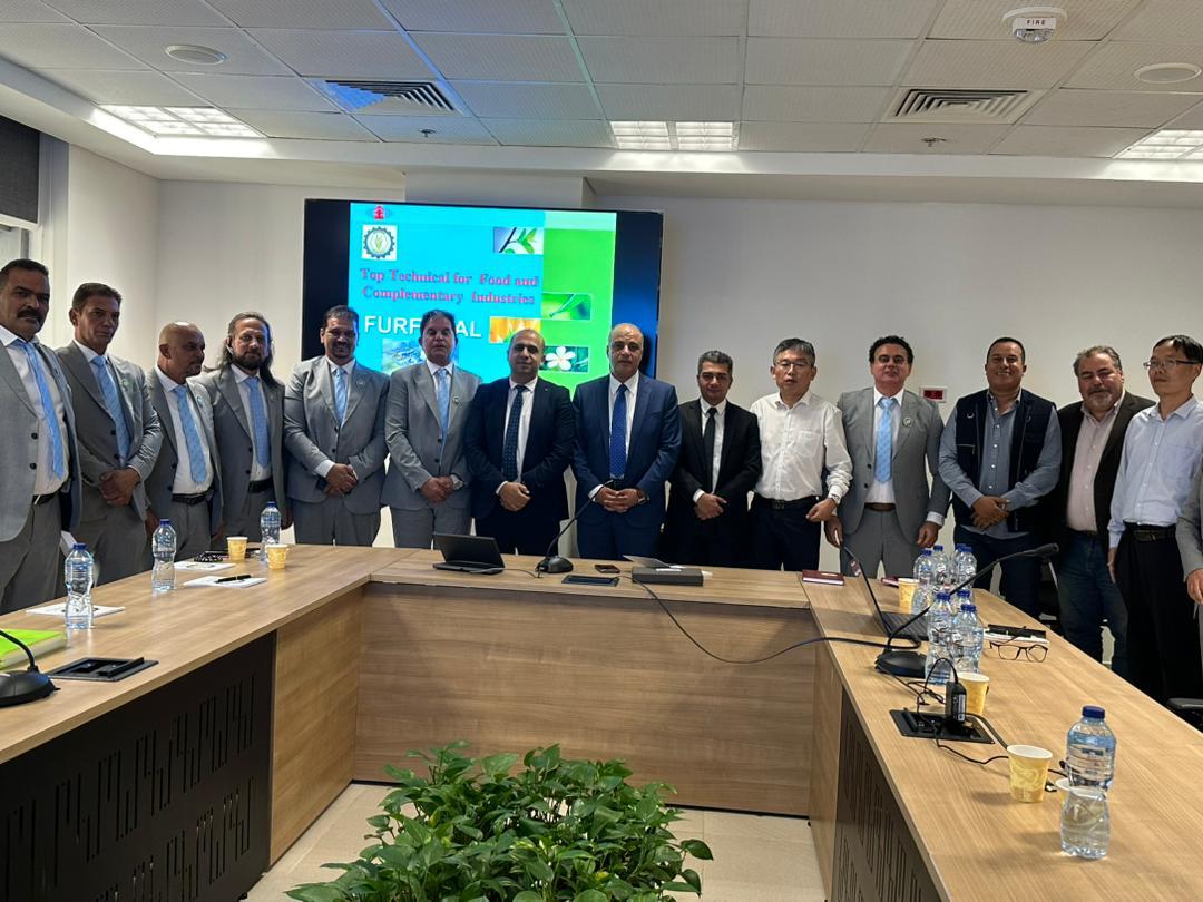 وحضر الاجتماع وفد من الخبراء الصينين يمثلون الشركه المصنعه لخطوط الإنتاج وصاحبة براءة الاختراع لإنتاج الماده الكيميائية من المخلفات الزراعيه.
