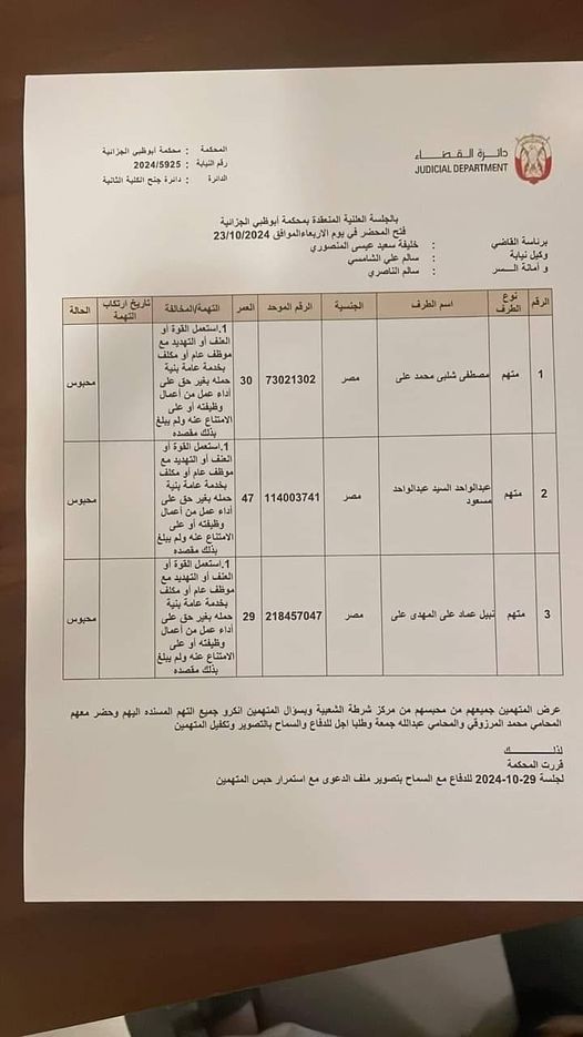 أعلنت النيابة في أبوظبي عن تأجيل قضية ثلاثي الزمالك، عبد الواحد السيد مدير الكرة، ونبيل عماد دونجا، ومصطفى شلبي، إلى جلسة 29 أكتوبر الجاري، مع استمرار حبسهم على ذمة التحقيقات.