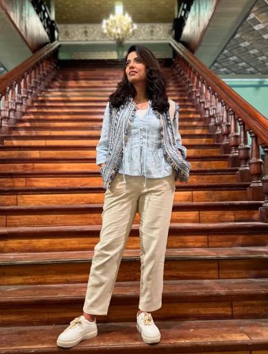 وبدت سهر الصايغ بإطلالة كاجوال، حيث ارتدت قميصًا باللون اللبني ونسقت عليه بنطال باللون البيج فيما انتعلت حذاءً باللون الأبيض.