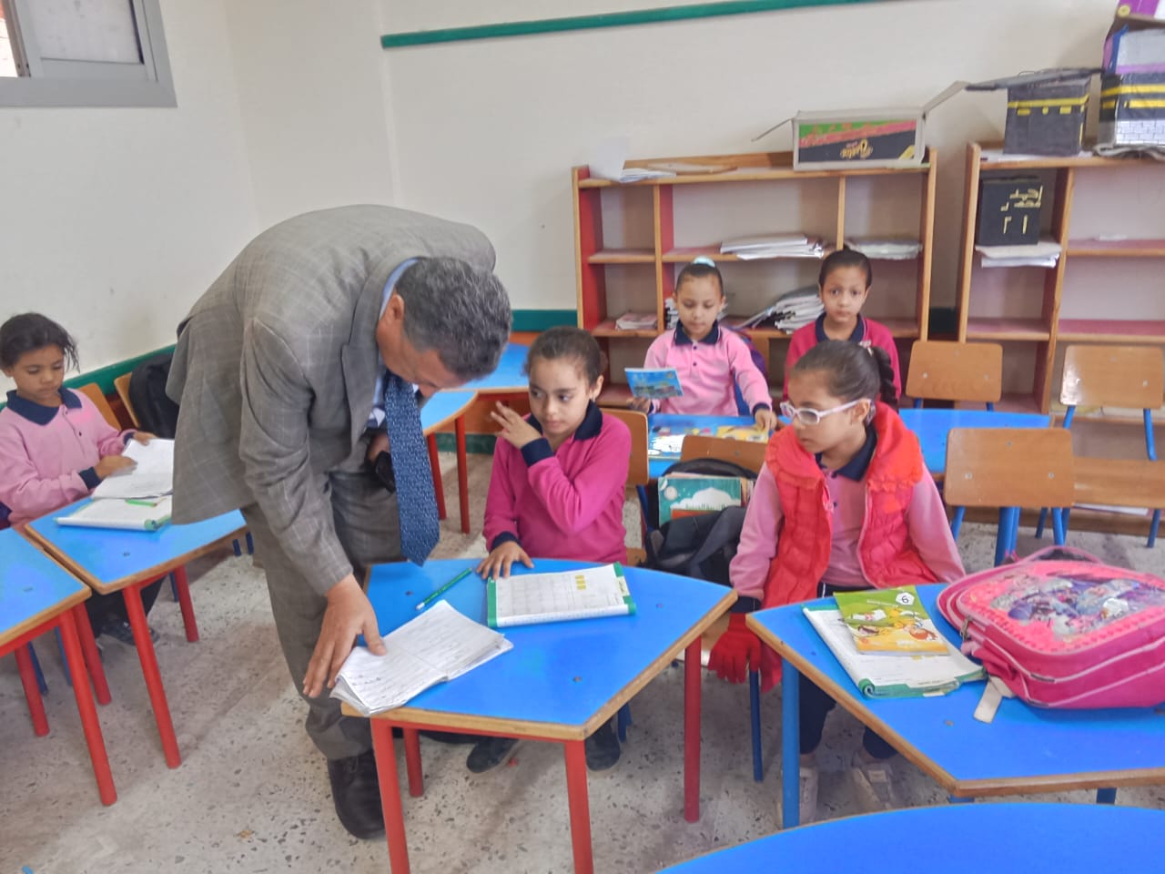 وحرص وكيل الوزارة خلال جولته على متابعة مستوى الطلاب في القراءة وكشكول الحصة والواجب ووجه بالتركيز على متابعة مستوى الطلاب فى القراءة والكتابة وإعداد برامج علاجية لضعاف القراءة، وأداء الطلاب للتقييمات الأسبوعية، موجها المعلمين بالمتابعة المستمرة لكافة الآليات المتعلقة بأعمال السنة وانتظام أداء الطلاب للتقييمات الأسبوعية.