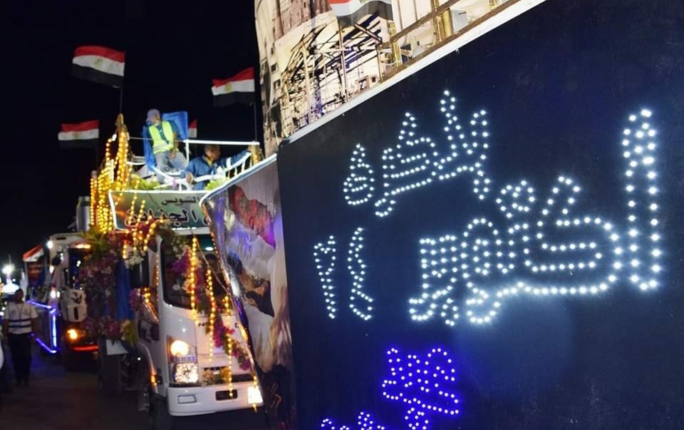 محافظ السويس يشهد عبور موكب عربات الزهور أمام النصب التذكاري