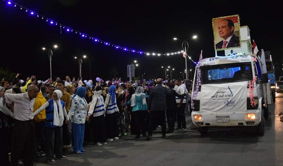 وعبرت سيارات الورود الخاصة بشركات البترول والأجهزة التنفيذية والأحياء وعدد من الشركات الأخرى النصب التذكاري بشارع الجلاء إحتفالاً بمرور51 عاما علي إنتصارات 24 أكتوبر.