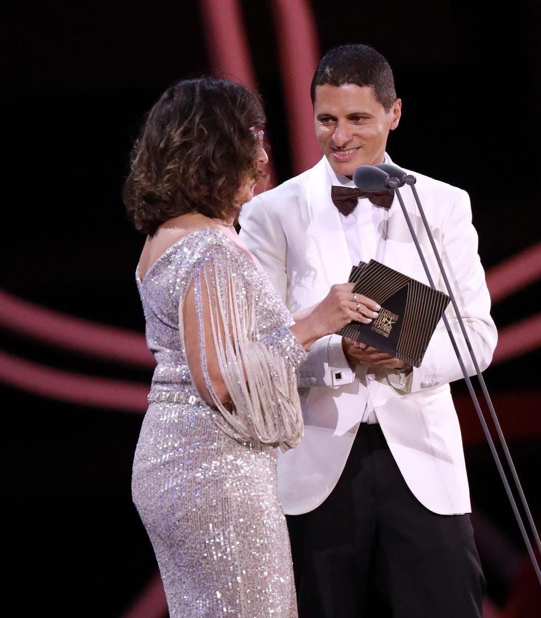 كما ألقت المخرجة إيناس الدغيدي كلمة خاصة، تلاها عرض كليب يستعرض مسيرة الفنان القدير محمود حميدة، الذي نال جائزة "الإنجاز الإبداعي" تقديرًا لعطائه الفني وإسهاماته البارزة في السينما العربية. وقد عبّر النجم محمود حميدة عن امتنانه قائلاً: "أشكر جميع النجمات والنجوم الحاضرين، يسرا، ولبلبة، وإلهام شاهين، وحسين فهمي. اليوم سعادتي مضاعفة للغاية، وخصوصًا أن هناك أمرًا شخصيًا أرغب في مشاركته. لطالما حلمت بإنشاء مدينة وإقامة مهرجان سينمائي كبير في مرسى علم، لكنني لم أتمكن من تحقيقه. ومع ذلك، نجح نجيب وسميح ساويرس في تحقيق هذا الحلم، رغم أنهما مهندسان من خارج مجالنا، لكن شغفهما بالسينما كان كبيرًا. أتمنى أن يستمر هذا المهرجان ولا يتوقف أبدًا".