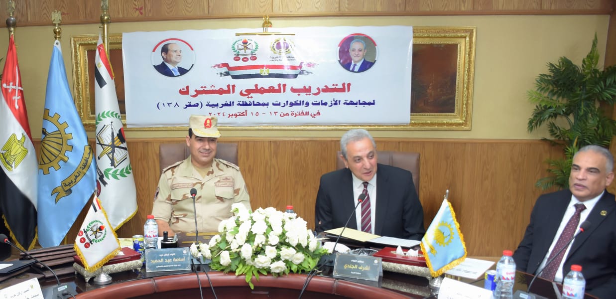 فى إطار حرص القوات المسلحة على دعم قطاعات المجتمع المدنى والتنسيق المستمر مع كافة أجهزة ومؤسسات الدولة ، نظمت قوات الدفاع الشعبى والعسكرى بالتعاون مع محافظة الغربية مشروعاً للتدريب العملى المشترك على إدارة الأزمات والكوارث بمشاركة كافة الأجهزة التنفيذية بالمحافظة من خلال تنفيذ محاكاة لعدد من الأزمات للوقوف على مدى الجاهزية والإستعداد لمجابهة المواقف الطارئة , كما تم المرور على إصطفاف للمعدات والمركبات ومعسكر الإيواء العاجل بالمحافظة للتأكد من مدى جاهزيتها , وفى نهاية المشروع تم تكريم عدد من أسر الشهداء الذين ضحوا بدمائهم وأرواحهم الطاهرة فى سبيل رفعة مصرنا الغالية .