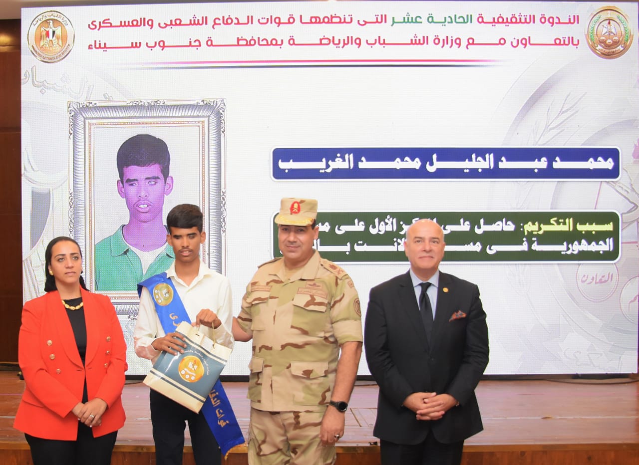 وخلال الفاعليات ألقى قائد قوات الدفاع الشعبى والعسكرى كلمة هنأ فيها الحضور بذكرى إنتصارات أكتوبر المجيدة ، كما أشار إلى أهمية توعية الشباب المصرى بحجم الجهود التى تقوم بها كافة مؤسسات الدولة لتوفير الحياة الكريمة للمواطنين ، كذلك جهود وتضحيات رجال القوات المسلحة فى حماية حدود الوطن وصون مقدساته .