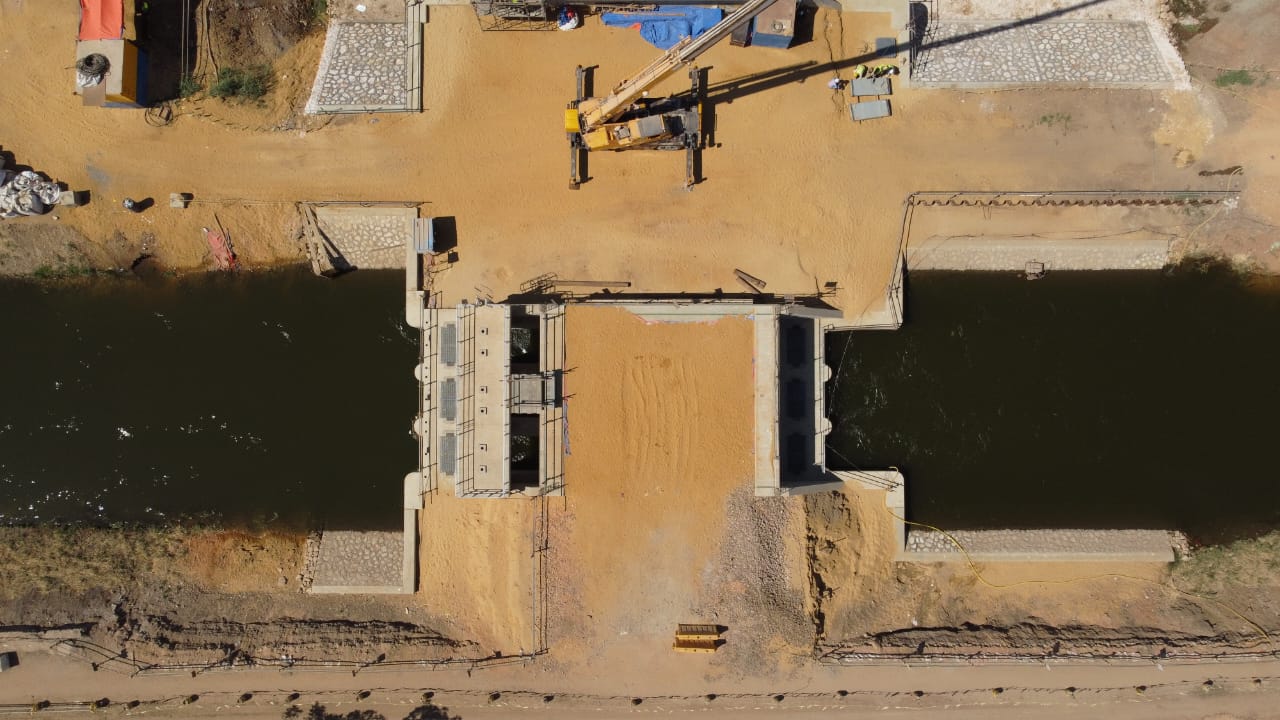 وتم الانتهاء من صب الخرسانة المسلحة لكل من قنطرة الديروطية وقنطرة البدرمان ، وجارى تركيب البوابات ومنظومة التشغيل .