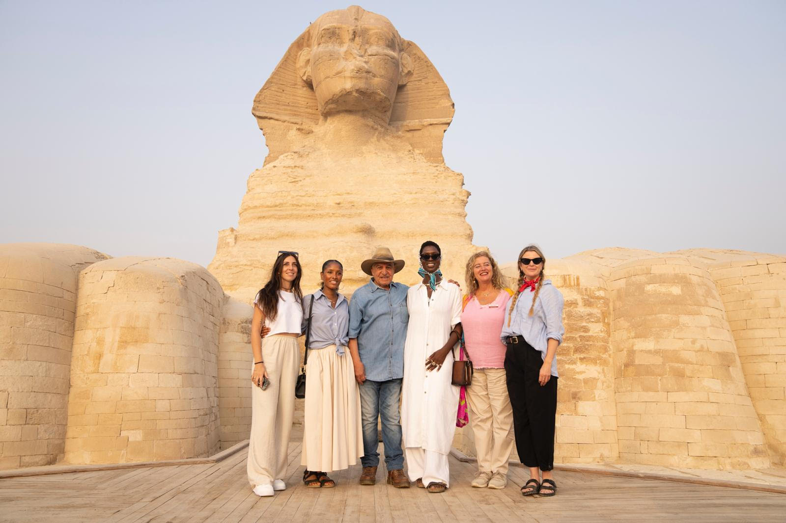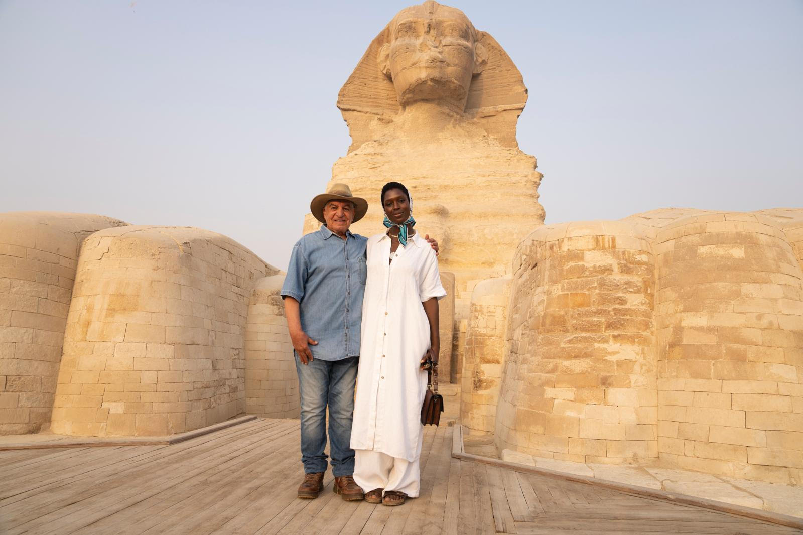 التقى عالم الآثار المصرية الدكتور زاهي حواس الممثلة الأمريكية Jodi Turner - Smith أمام تمثال أبو الهول والوفد المرافق لها.