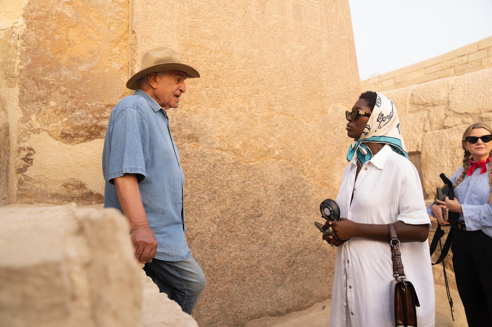 زاهي حواس يشرح أسرار الأهرامات وأبو الهول للممثلة الأمريكية العالمية Jodi Turner - Smith