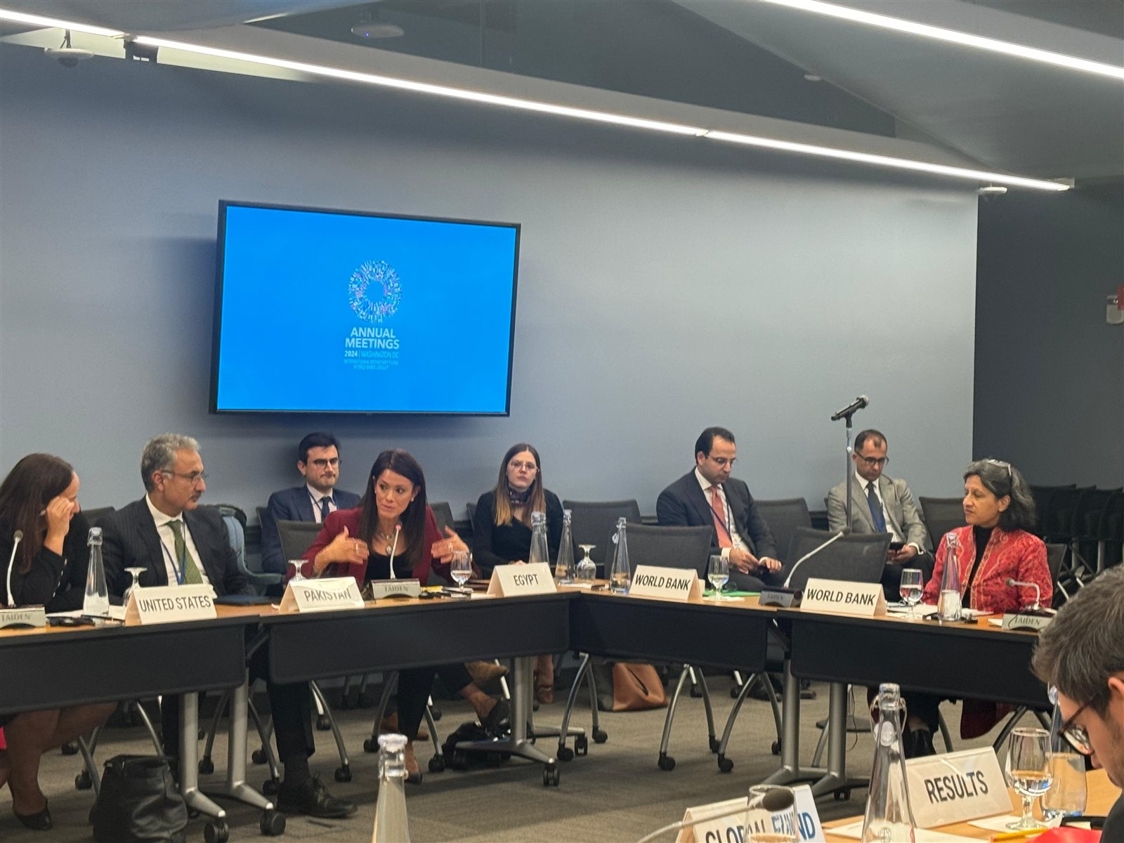 من جانب آخر شاركت وزيرة التخطيط والتنمية الاقتصادية والتعاون الدولي في المائدة المستديرة رفيعة المستوى المنعقدة خلال فعاليات الاجتماعات السنوية للبنك الدولي بعنوان، «استكشاف دور الأطراف ذات الصلة في الحد من الصراعات وتغير المناخ والفقر»، وذلك بمشاركة آناليز دودز، وزيرة شؤون التنمية الدولية في المملكة المتحدة، وآنا بيردي، المدير المنتدب لشؤون العمليات بالبنك الدولي، أبيبي أيمرو سلاسي، مدير الإدارة الإفريقية في صندوق النقد الدولي .