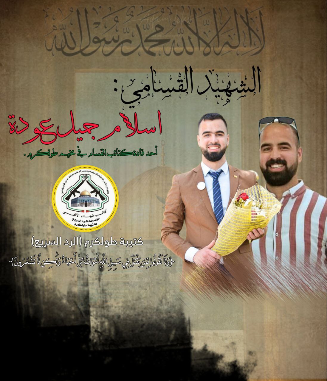 وقالت كتيبة طولكرم في بيانها: بكل فخر واعتزاز تنعى كتائب شهداء الأقصى - الرد السريع أحد فرسان القسام في مدينة طولكرم ومخيمها، الشهيد إسلام جميل عودة.