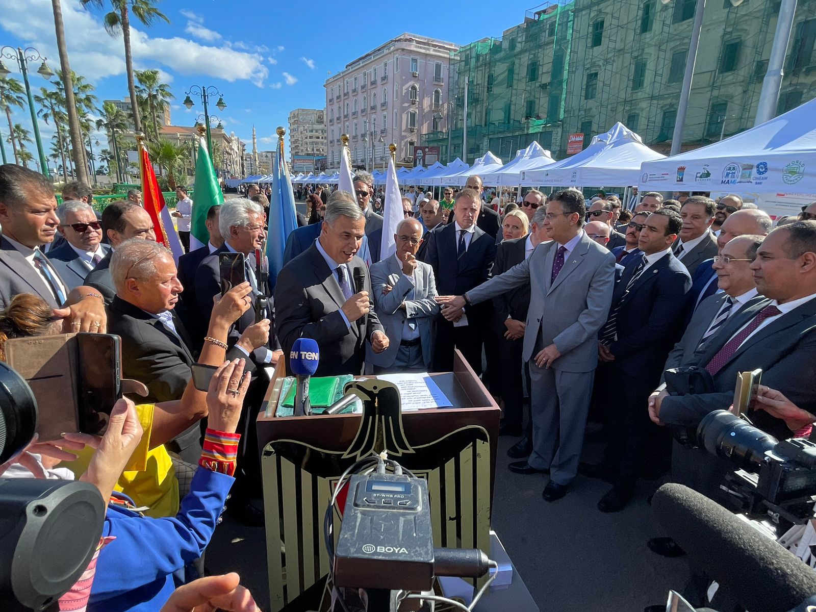 وكان وزير التموين الدكتور شريف فاروق واحمد الوكيل رئيس الاتحاد العام للغرف التجارية ووزير الزراعة والغابات الايطالى افتتحا صباح اليوم معرض سوق اليوم الواحد فى محطة الرمل بالإسكندرية.