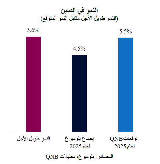 تشير توقعات بلومبرغ حالياً إلى أن الاقتصاد الصيني سيحقق نمواً متواضعاً تبلغ نسبته 4.8% و4.5% في عامي 2024 و2025.  قال تقرير QNB أنه لا يزال هناك مجال لتعديل هذه التوقعات وزيادتها بشكل كبير إلى 5.5%، وهو ما يتوافق أكثر مع إمكانات نمو الناتج المحلي الإجمالي. وهناك عاملان رئيسيان يدعمان موقفنا.