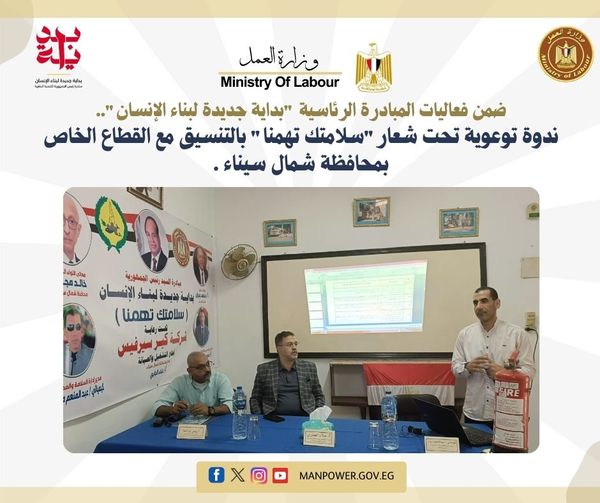 وزارة العمل تنظم ندوة "سلامتك تهمنا" مع القطاع الخاص في شمال سيناء