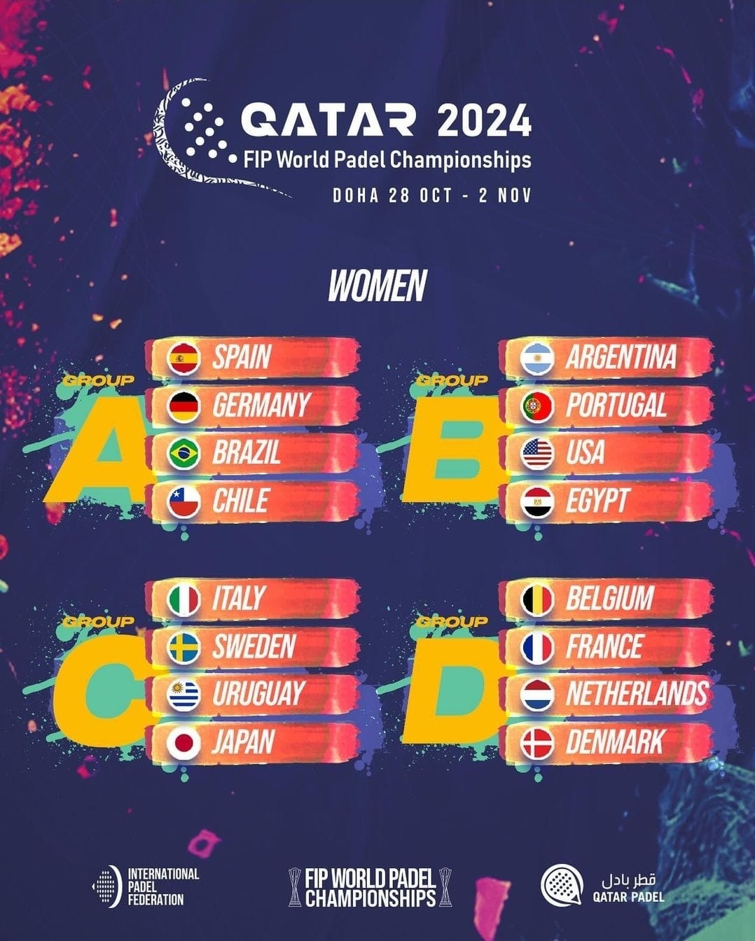 أسفرت قرعة بطولة كأس العالم للبادل عن وقوع المنتخب الوطني للسيدات في المجموعة الثانية من البطولة المونديالية والمقرر إقامتها بالعاصمة القطرية الدوحة خلال الفترة من 28 أكتوبر الجاري وحتى 2 نوفمبر المقبل.