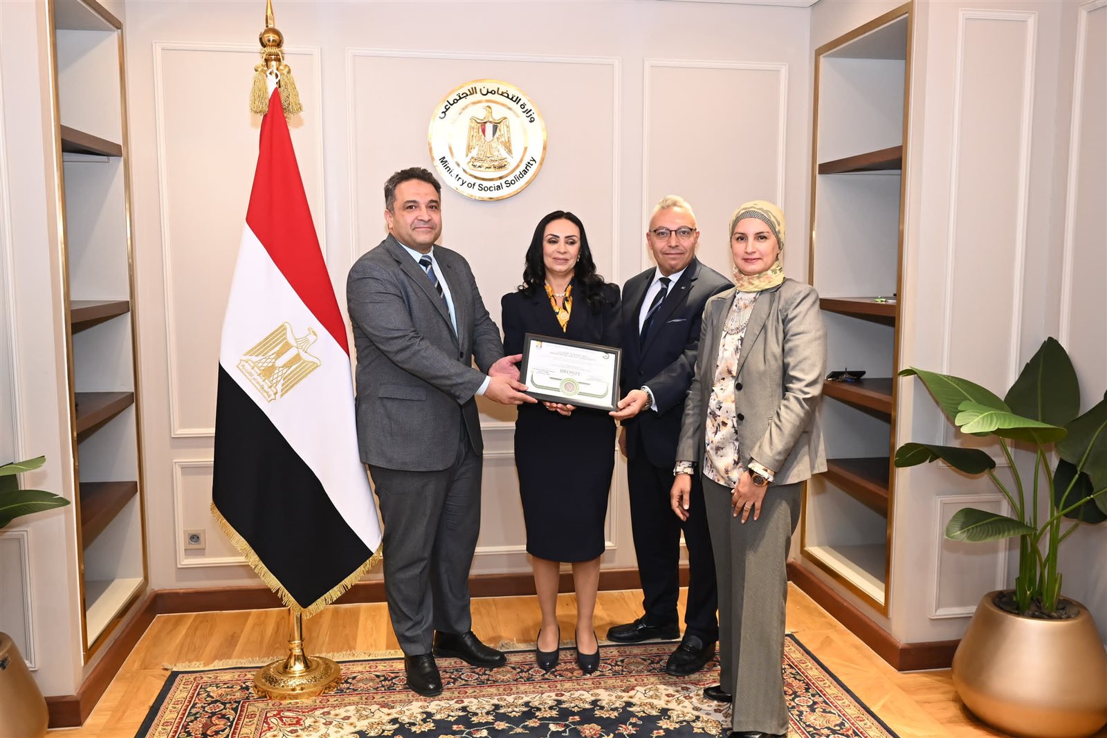 وزيرة التضامن تتسلم شهادة الهرم الأخضر من المركز القومي لبحوث الإسكان والبناء