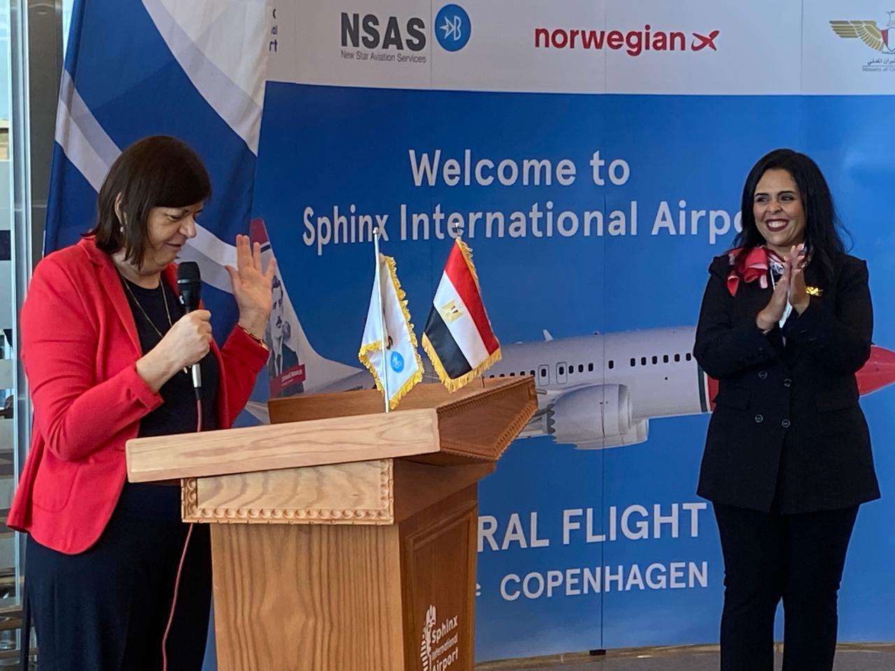 سفيرتا الدنمارك والنرويج تستقبل أولى رحلات الخطوط النرويجية بمطار سفنكس
