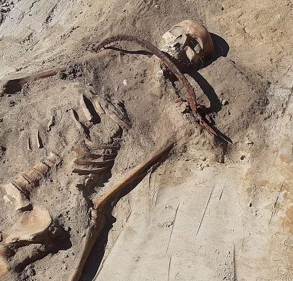 وبعد تنظيف التربة بعناية، عثر الباحثون على زوسيا، وهي الهيكل العظمي الوحيد في الحقل الذي يحمل منجلاً حول عنقه.