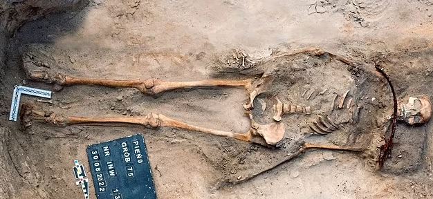 اكتشف علماء الآثار في منطقة ريفية في بولندا هيكل عظمي مربوط بقيد حول الرقبة وقفل يخترق أصبع القدم.