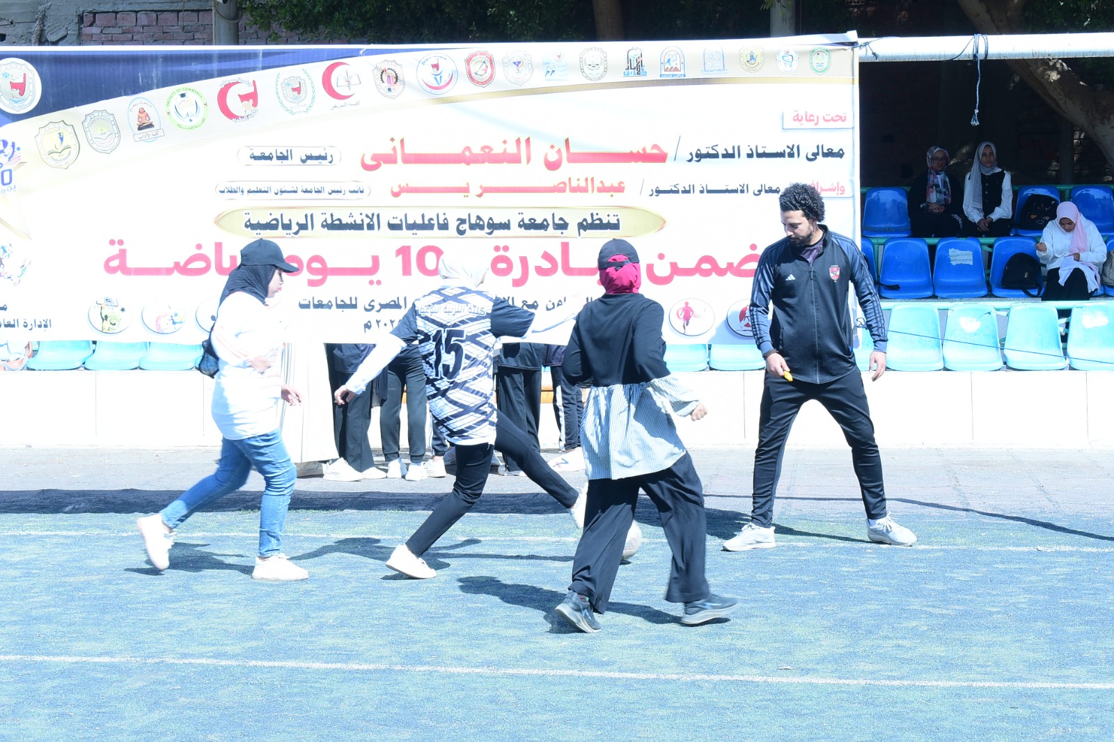 نظمت إدارة النشاط الرياضي بالإدارة العامة لرعاية الشباب المركزية بجامعة سوهاج، فعالية اليوم الرياضي للفتاة الجامعية ضمن مبادرة "100 يوم رياضة"، وفى إطار المبادرة الرئاسية (بداية جديدة لبناء الإنسان المصرى)، والتى تستهدف الاستثمار في رأس المال البشري وتنمية مهارات وقدرات كافة فئات المجتمع، وخاصة الشباب، صرح بذلك الدكتور حسان النعماني رئيس الجامعة، وقال أن الجامعة حريصة على تنفيذ توجيهات القيادة السياسية، من خلال تنظيم فعاليات تنمي القدرات البشرية وتطور مهارات الطلاب البدنية والعقلية، عن طريق الاهتمام بالرياضة وترسيخ فوائدها فى أذهانهم، وتشجيعهم على ممارسة الرياضة كأسلوب حياة يومي لرفع معدلات النشاط البدني لطلاب الجامعة.