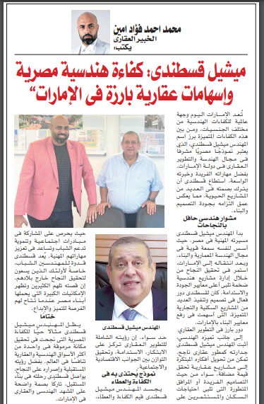 محمد احمد فؤاد امين الخبير العقاري يكتب: ميشيل قسطندي.. كفاءة هندسية مصرية وإسهامات عقارية بارزة في الإمارات