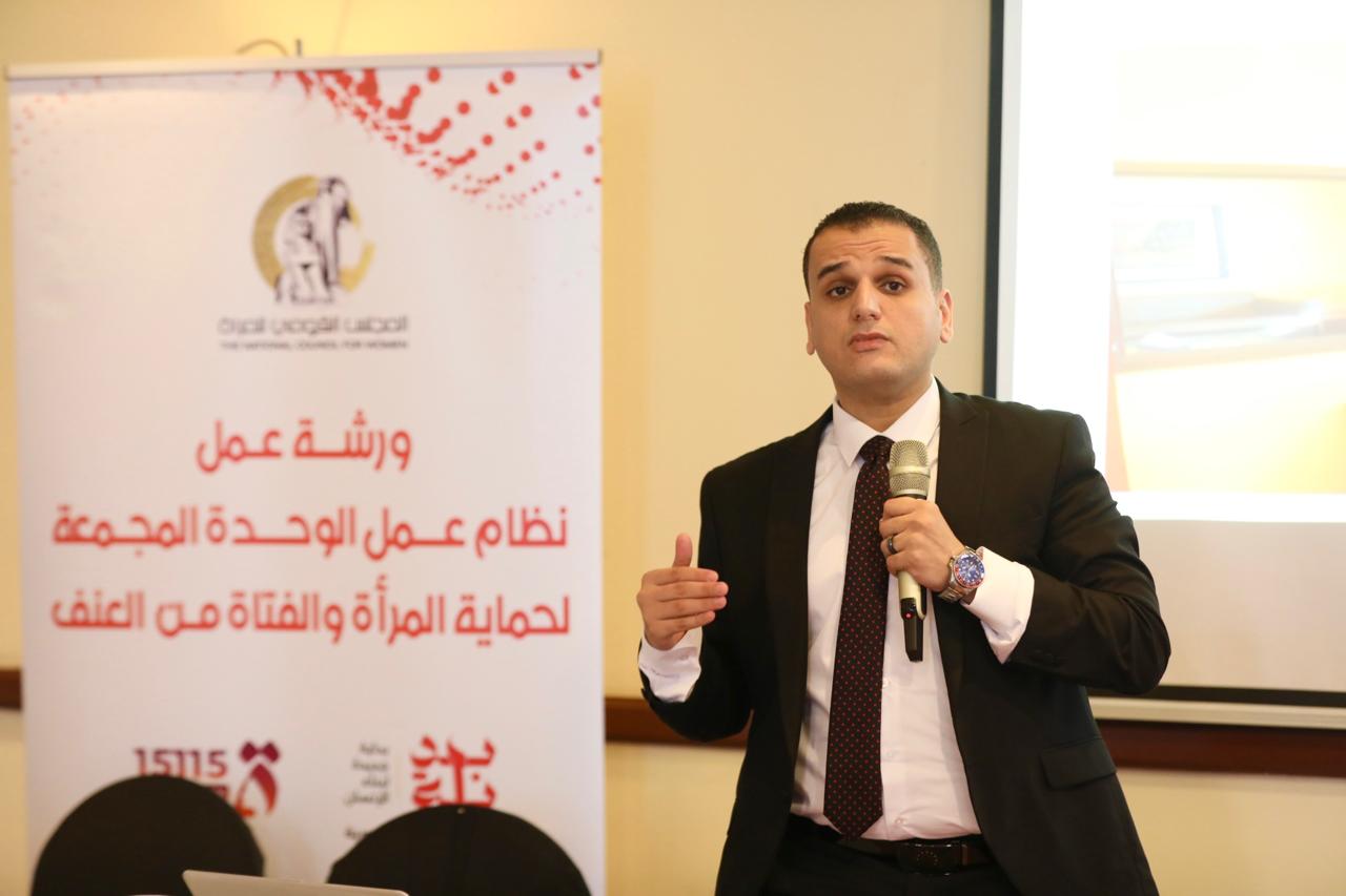 واستعرض  أحمد جمعة مسؤول ملف جرائم العنف ضد المرأة بالمكتب نظام عمل الوحدات المجمعة للعنف ضد المرأة فى الولايات المتحدة الأمريكية وادارة الحالة حيث يتم تقديم كافة الخدمات داخل الوحدة.
