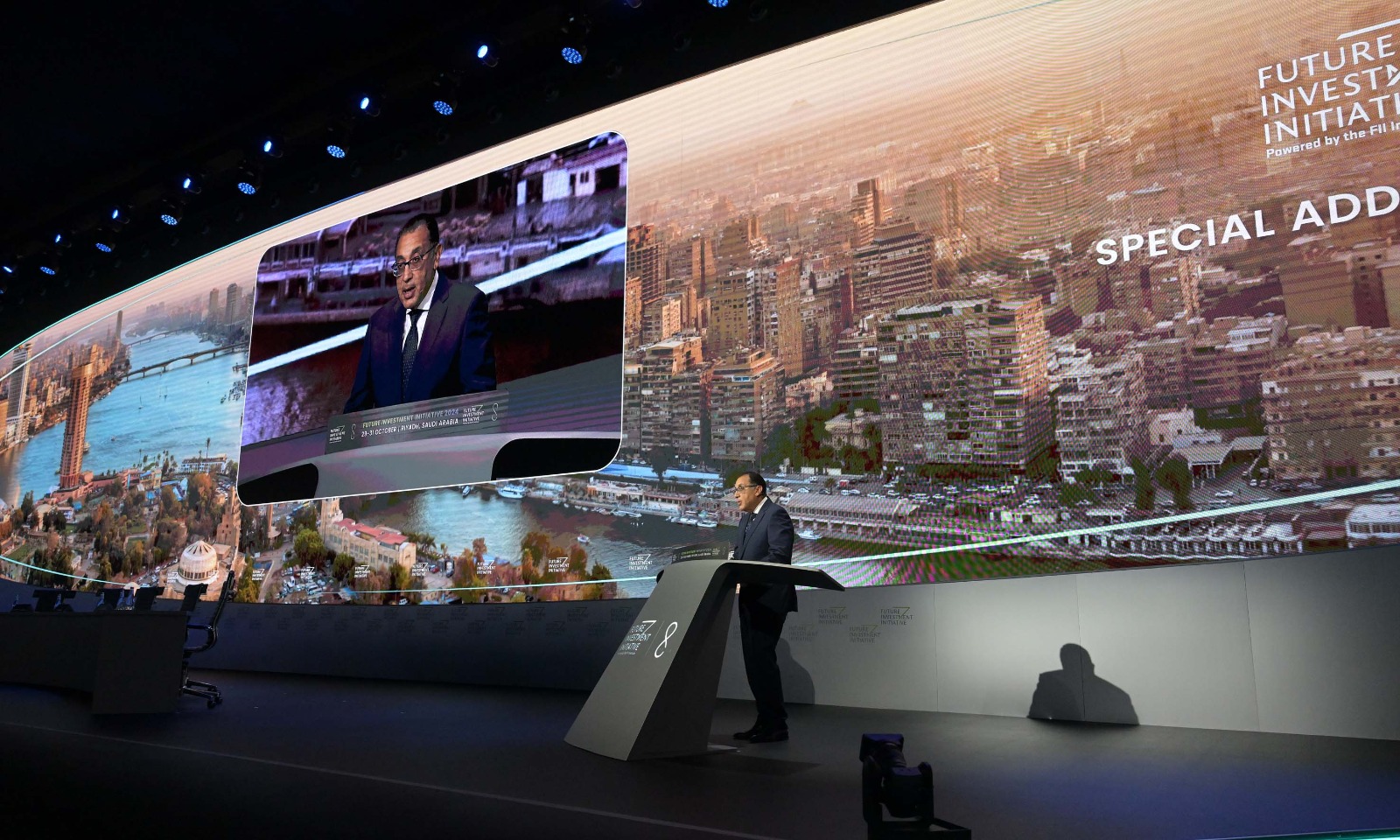ألقى الدكتور مصطفى مدبولي، رئيس مجلس الوزراء، كلمةً خلال مشاركته، نيابةً عن الرئيس عبدالفتاح السيسي، رئيس الجمهورية، في الجلسة الافتتاحية للنسخة الثامنة لمؤتمر "مُبادرة مستقبل الاستثمار" الذي تستضيفه المملكة العربية السعودية خلال الفترة من 29 أكتوبر إلى 31 من شهر أكتوبر الجاري.